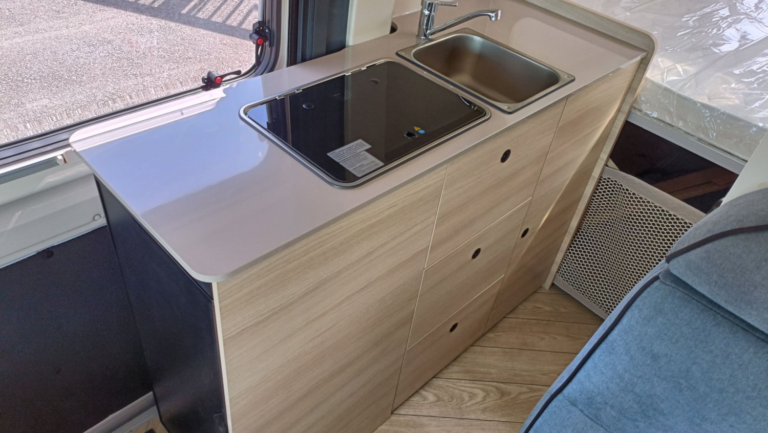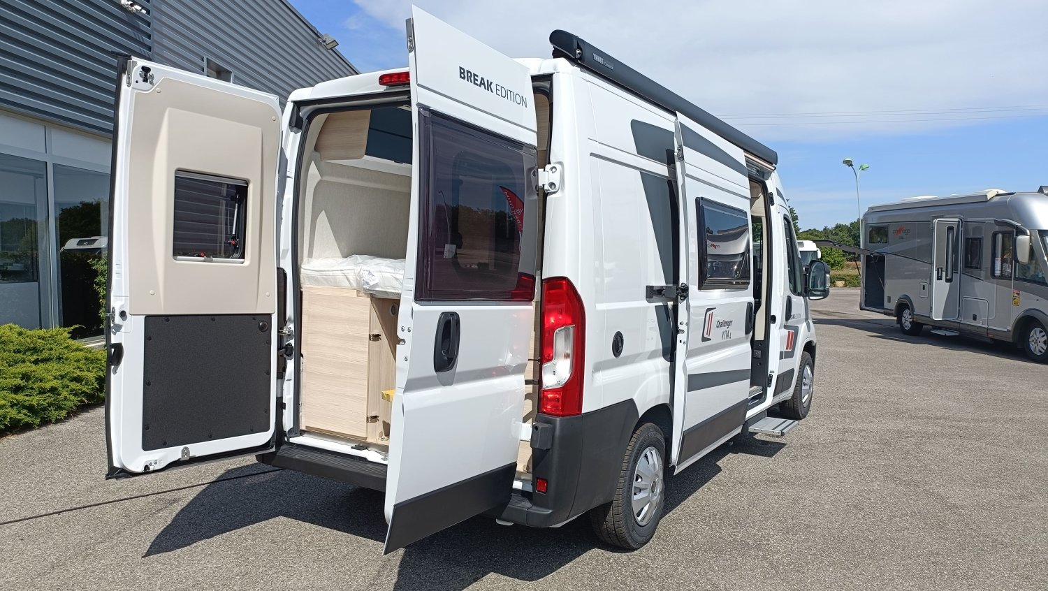 Fourgon de 5m99 aménagé avec le nouveau porteur Citroën Jumper en 140 CV. Le V 114 dispose de 3 couchages dont un grand lit fixe arrière et un couchage en dinette. Présenté ici en finition BREAK EDITION LIGHT, ce fourgon dispose de tout le confort nécessaire avec un grand salon, une cuisine latérale avec de grands rangement, une salle d'eau avec toilette et de nombreux équipements.
