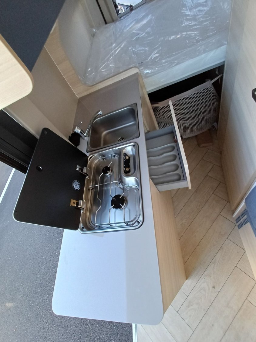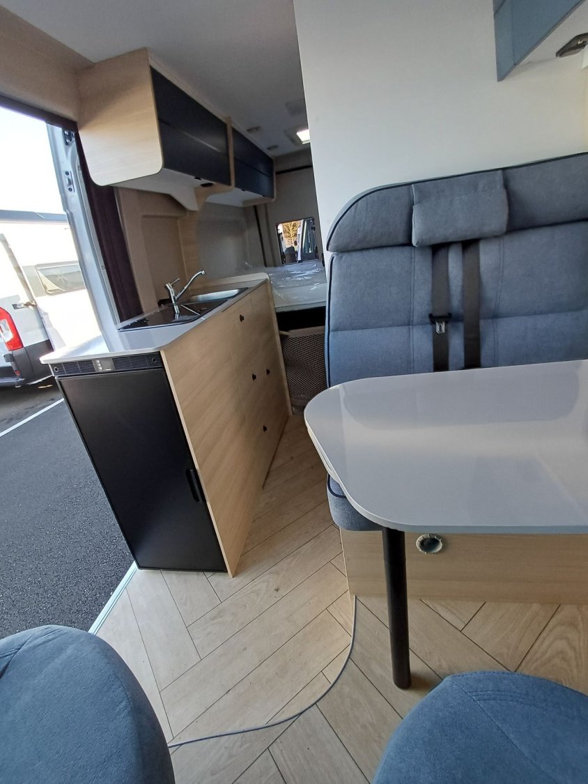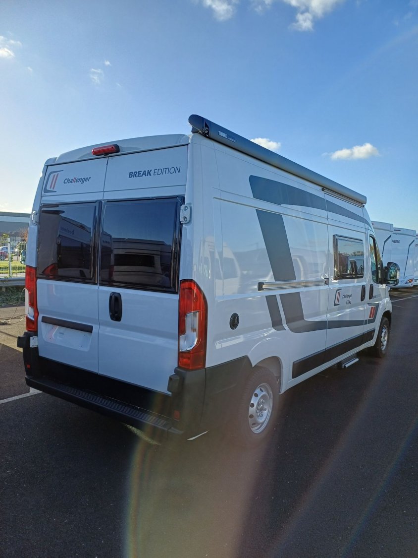 * Pack accessoires : Store extérieur, panneau solaire 200 W, éclairage extérieur, moustiquaire de porte, store cabine, complément couchage dinette, enjoliveurs de baies arrières.