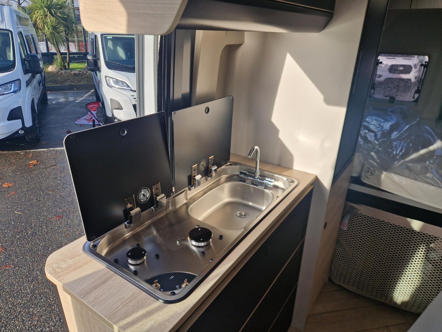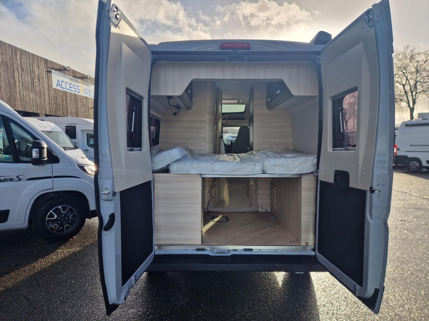 Fourgon de marque leader avec lit transversal sur soute, très bien équipé de série sur une base Fiat 2.2 l / 140 CV en BVA
