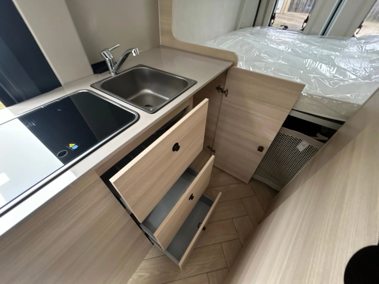 cabine, compléments couchage dinette, enjoliveurs de baies arrières
