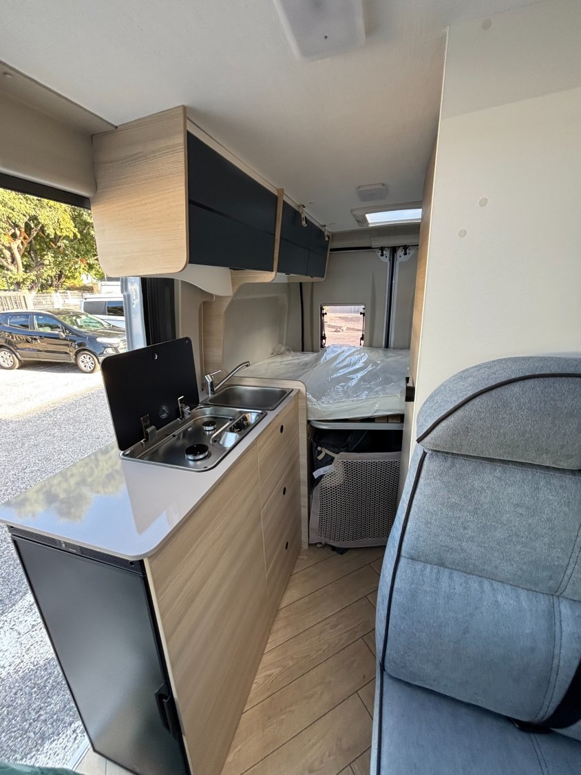 Le V114S est idéal pour aller où on veut, quand on veut, en toute discrétion, y compris dans la vie de tous les jours : Pour les escapades, il a tout : coin cuisine, salon, salle d'eau avec fenêtre et lit 2 places : 5,41m de plaisir à deux…Pour tous les jours, le lit arrière se relève pour gagner de la place et le salon est pourvu de 2 ceintures de sécurité pour voyager à 4.