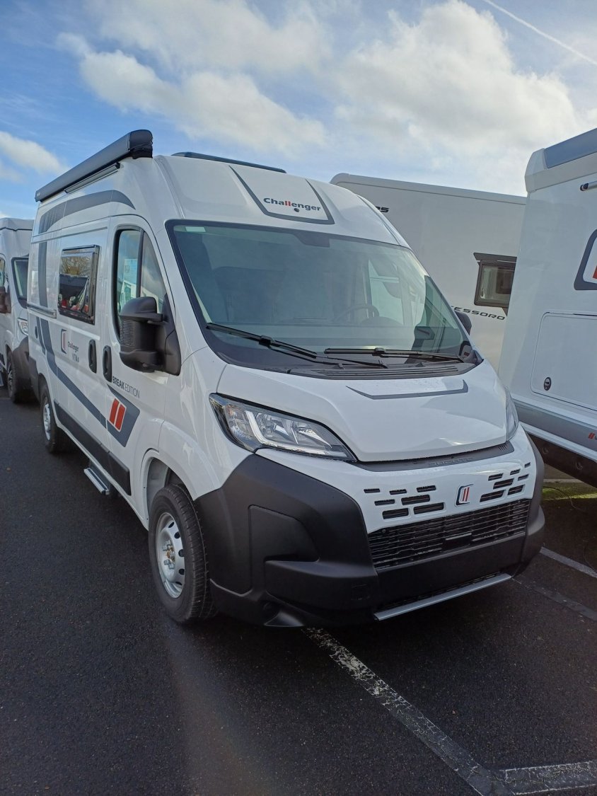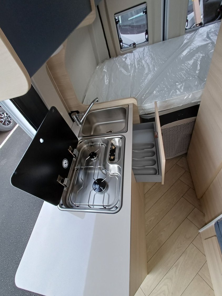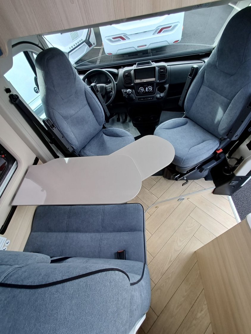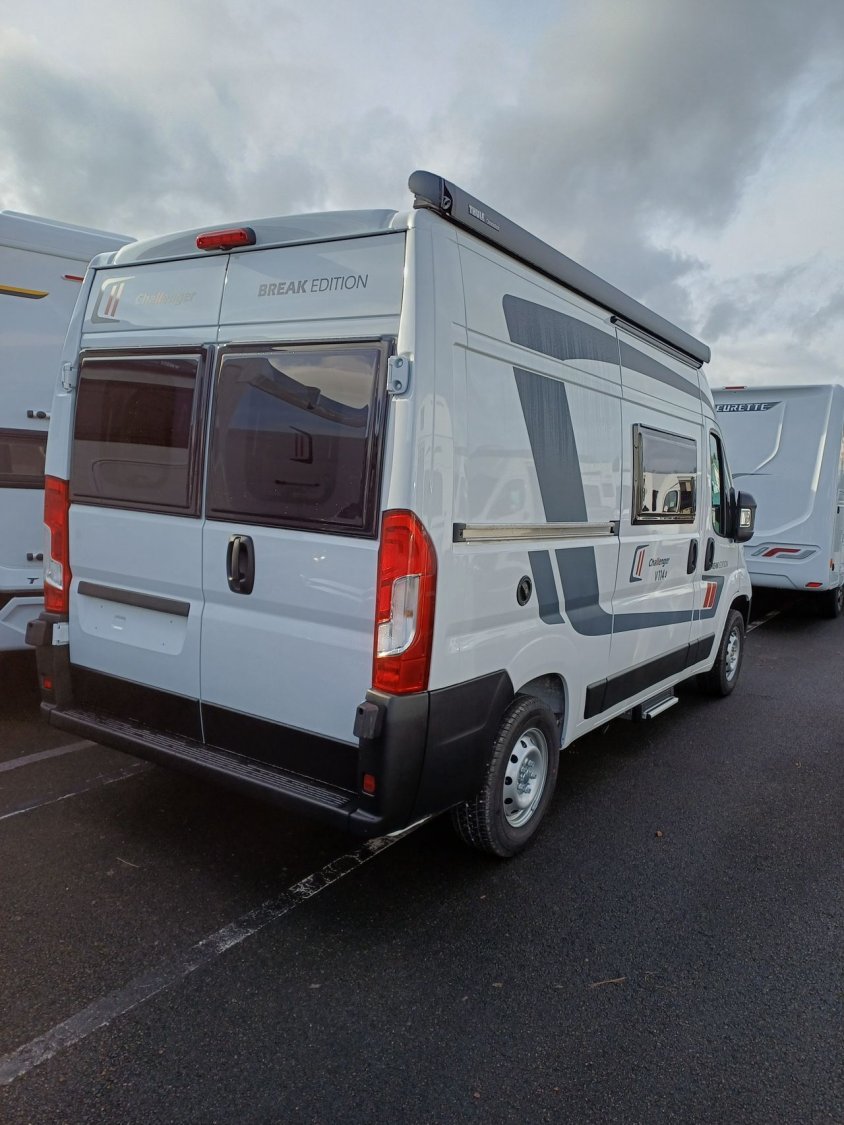 ° Pack accessoires : Store extérieur, panneau solaire 200 W, éclairage extérieur, moustiquaire de porte, store cabine, complément couchage dinette, enjoliveurs de baies arrières.