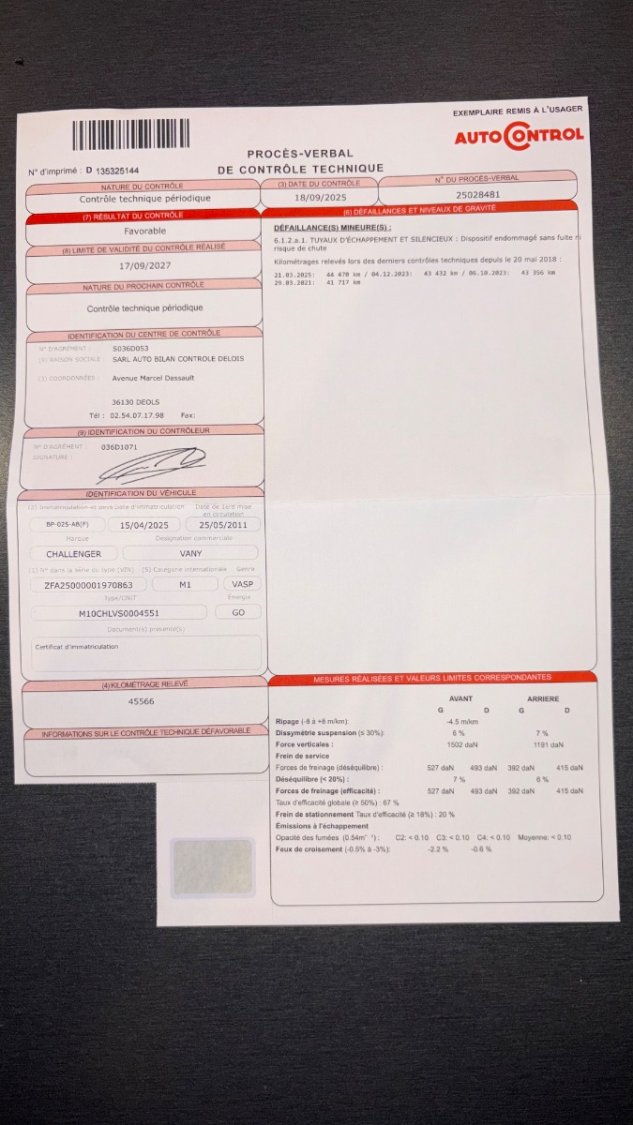✅ Contrôle technique favorable du 18/09/2025 – valable jusqu’au 17/09/2027