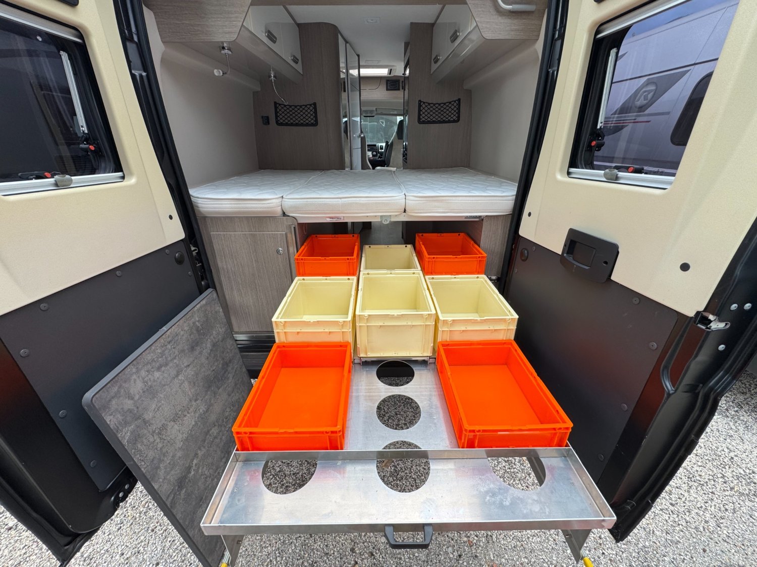 SUSPENSION PNEUMATIQUE, CLIMATISATION CELLULE, SYSTEME SOG, AUTORADIO CD, ELECTROVANNE, ATTELAGE, JANTE ALU, STORE EXTERIEUR, STORE REMIS