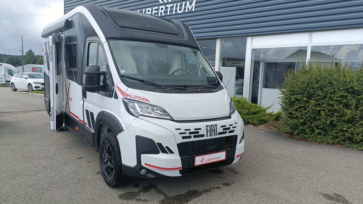 Profilé compact et baroudeur avec lit de pavillon électrique, salon face à face, salle de bain vario et penderie à hauteur variable. Ce profilé au look incomparable se conduit facilement, s'adapte à toutes les routes et propose un gabarit identique à celui d'un fourgon aménagé mais avec une isolation et un volume de vie supérieur.