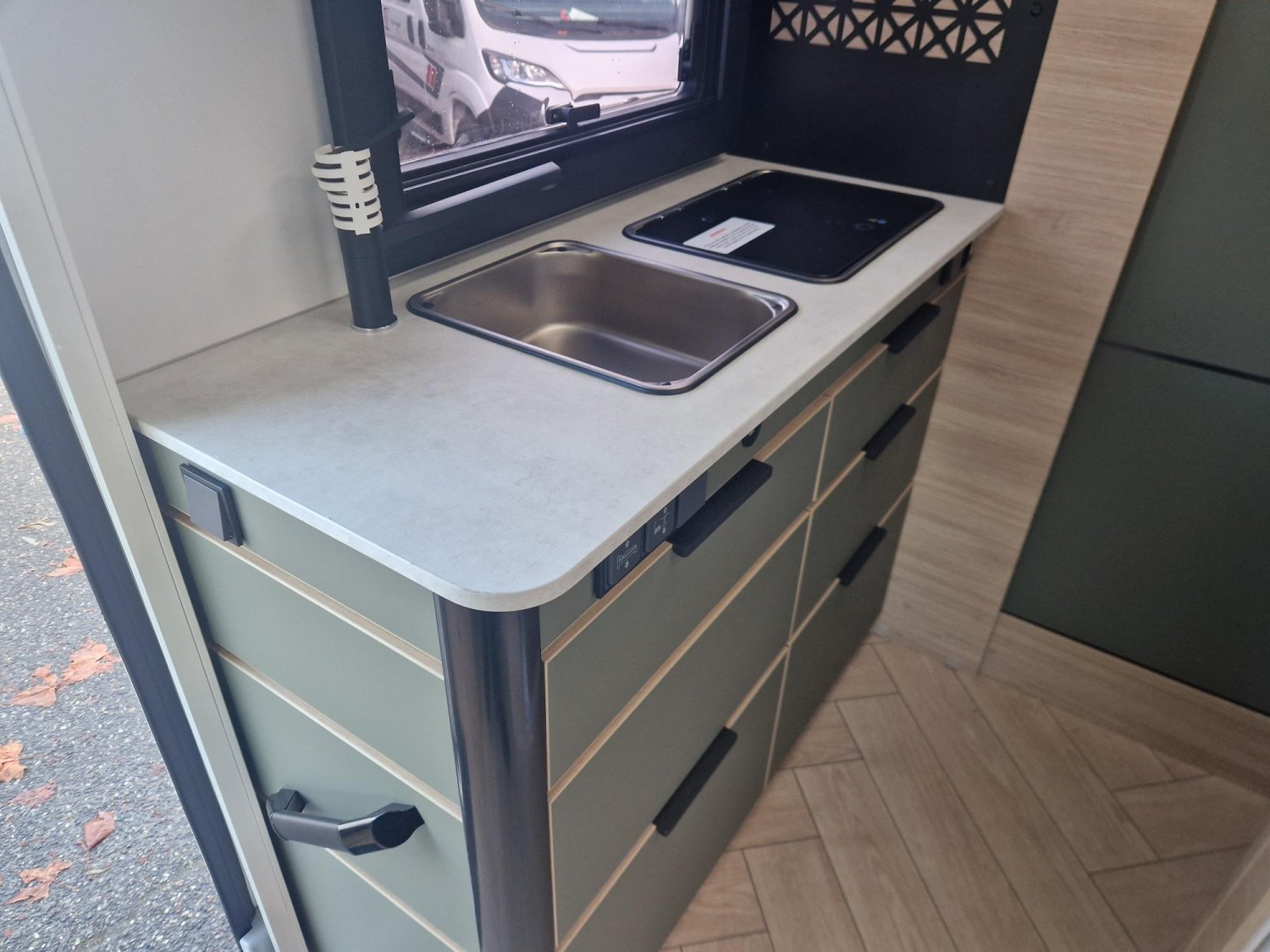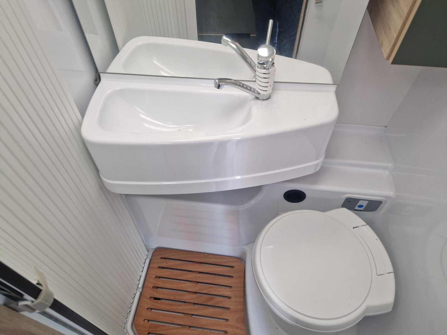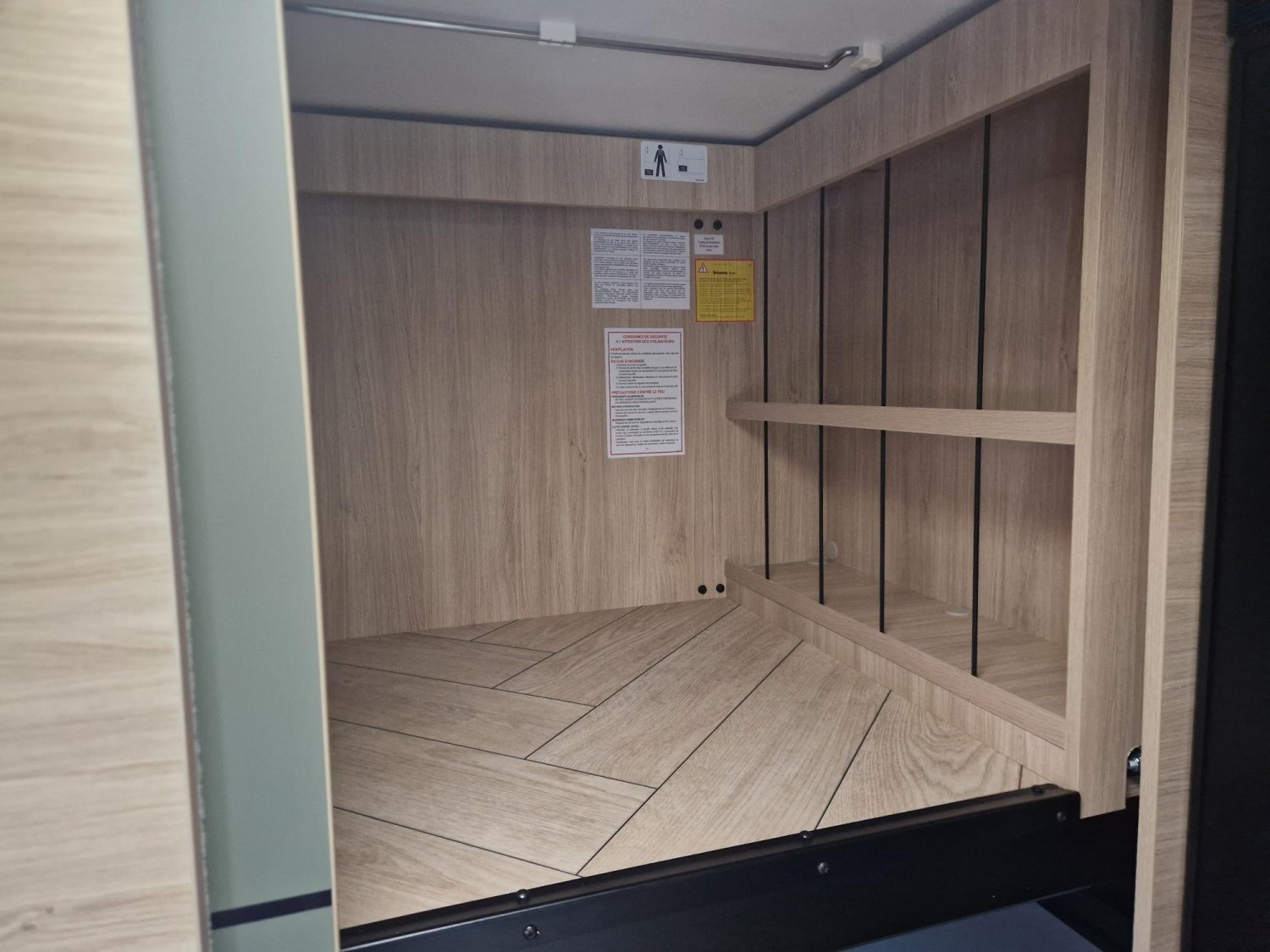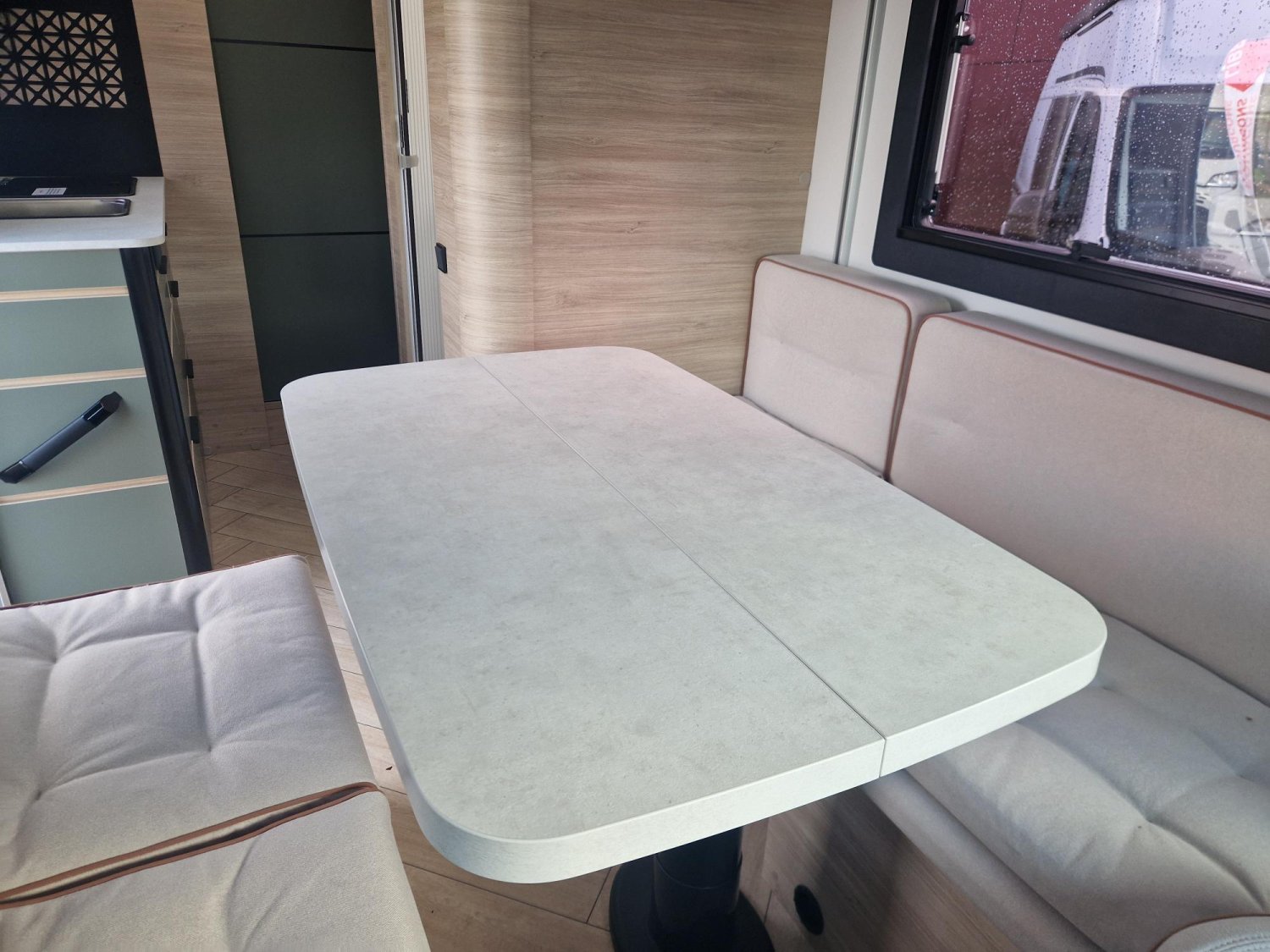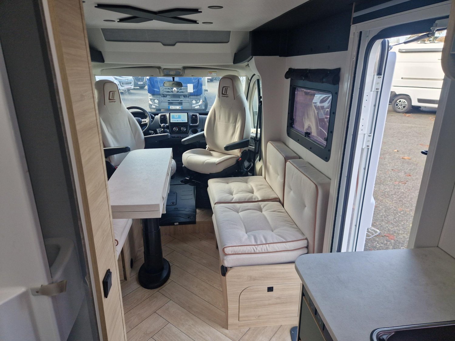 Profilé étroit de marque leader avec lit de pavillon électrique 2 places et dinette transformable en couchage. Compact, de nombreux rangement donc une penderie modulable en hauteur. Bien équipé de série, sur une base Fiat 2.2 l / 140 CV