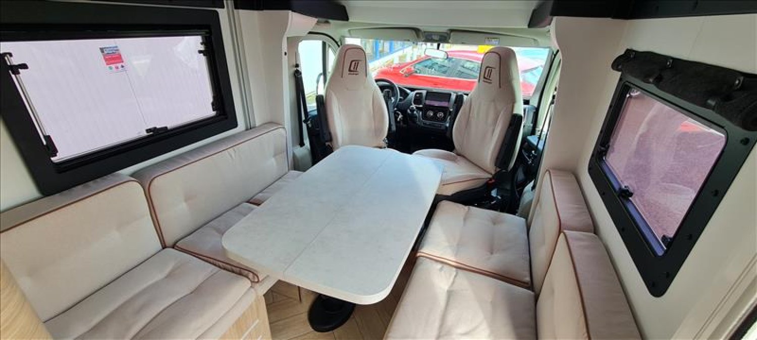 Climatisation manuelle de cabine, Double airbag, ESP, Pack look : Volant en cuir, bouches d'aération chromées, jan, Régulateur / limiteur de vitesse, Rétroviseurs électriques dégivrants, Traction +, Fixations Iso, Jantes alliage 16’’ noires, Prise de gaz extérieure, Prise eau extérieure, Caillebotis de douche, Chauffage sur carburant utilisable en roulant, Hill Descent control