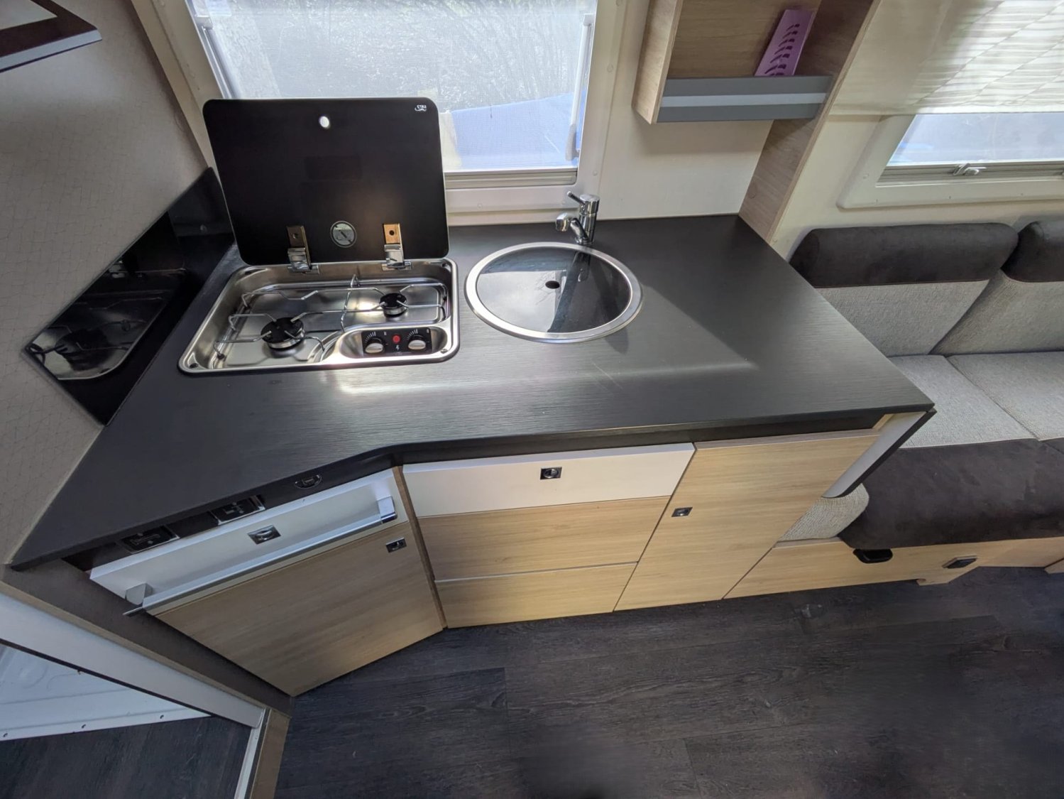 STORE EXTERIEUR 4M, GAZINIERE 2 FEUX, FENETRE SDB, DOUCHE ET WC SEPARES, ECLAIRAGE LED, PORTE VELO, REFRIGERATEUR TRI MIX, DOUBLE CLOISON DE SEPARATION, SALON FACE A FACE