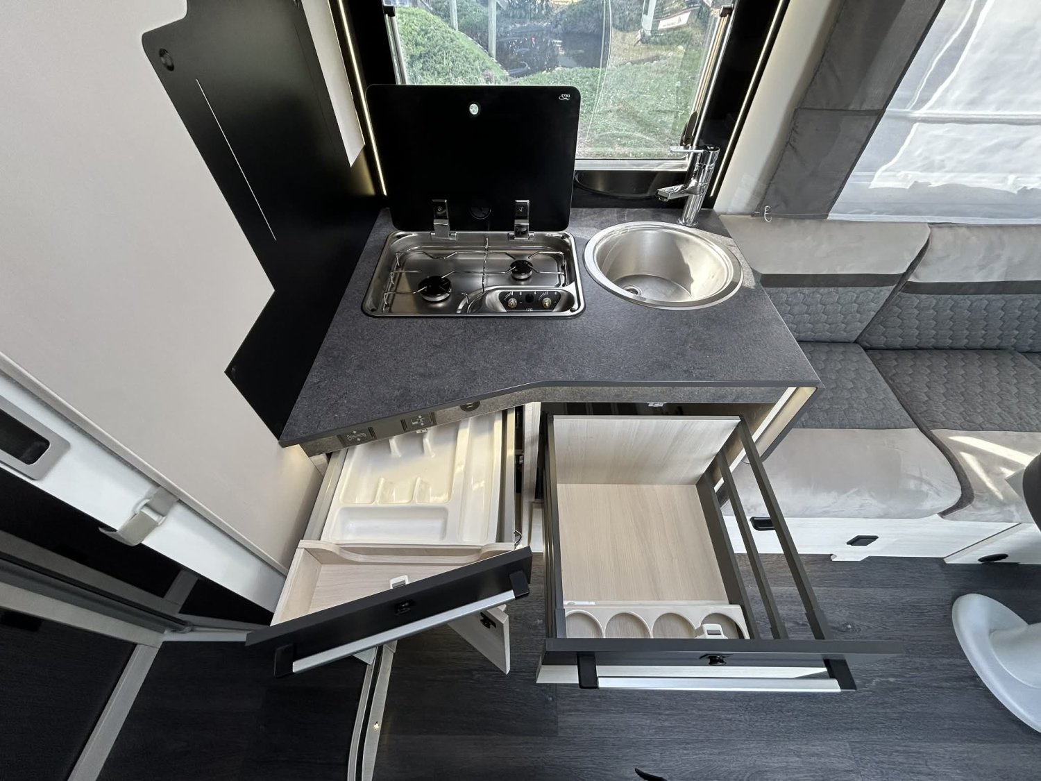 Grand frigo, Store extérieur, Jantes FORD GLASS, GPL, Moustiquaire porte cellule, Régulateur + limiteur de vitesse, BVA, Motorisation 170CV, Caméra de recul, Porte vélo, Panneau solaire, Store remis, Station multimédia