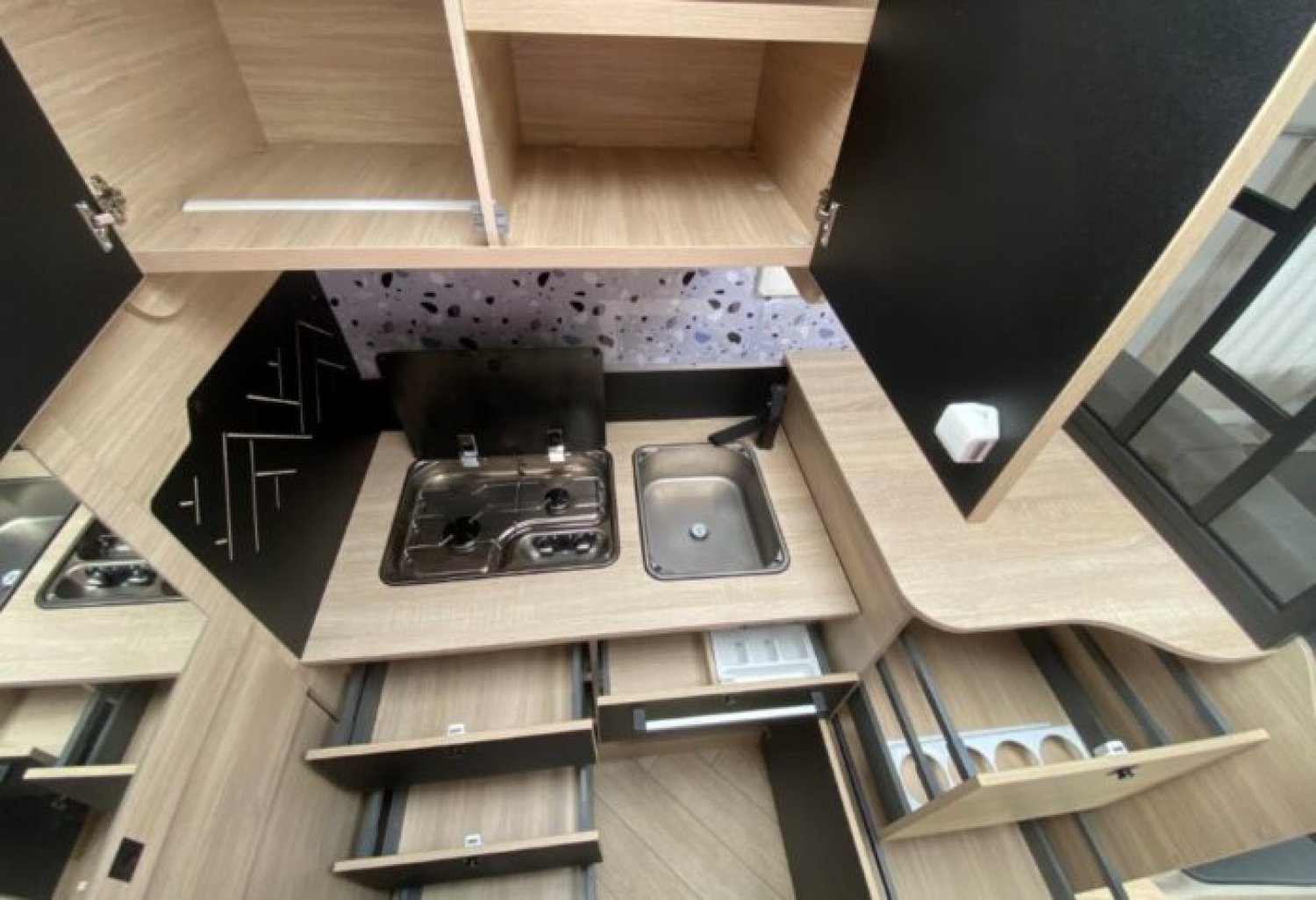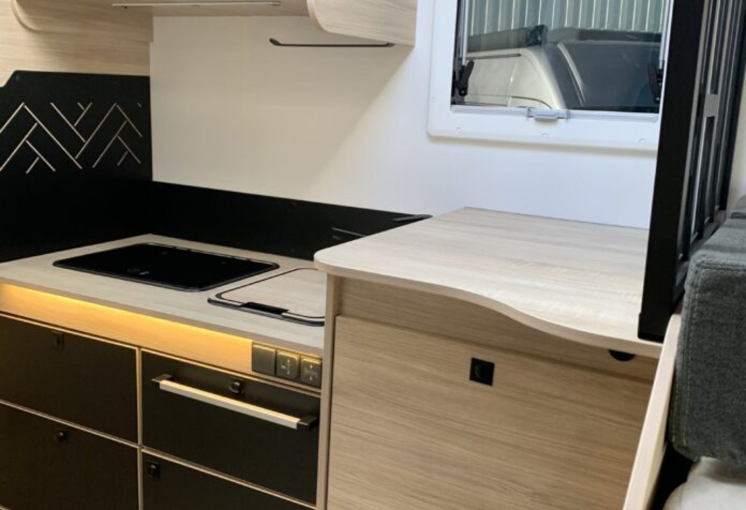 Cuisine fonctionnelle + rangements généreux pour voyager sereinement.