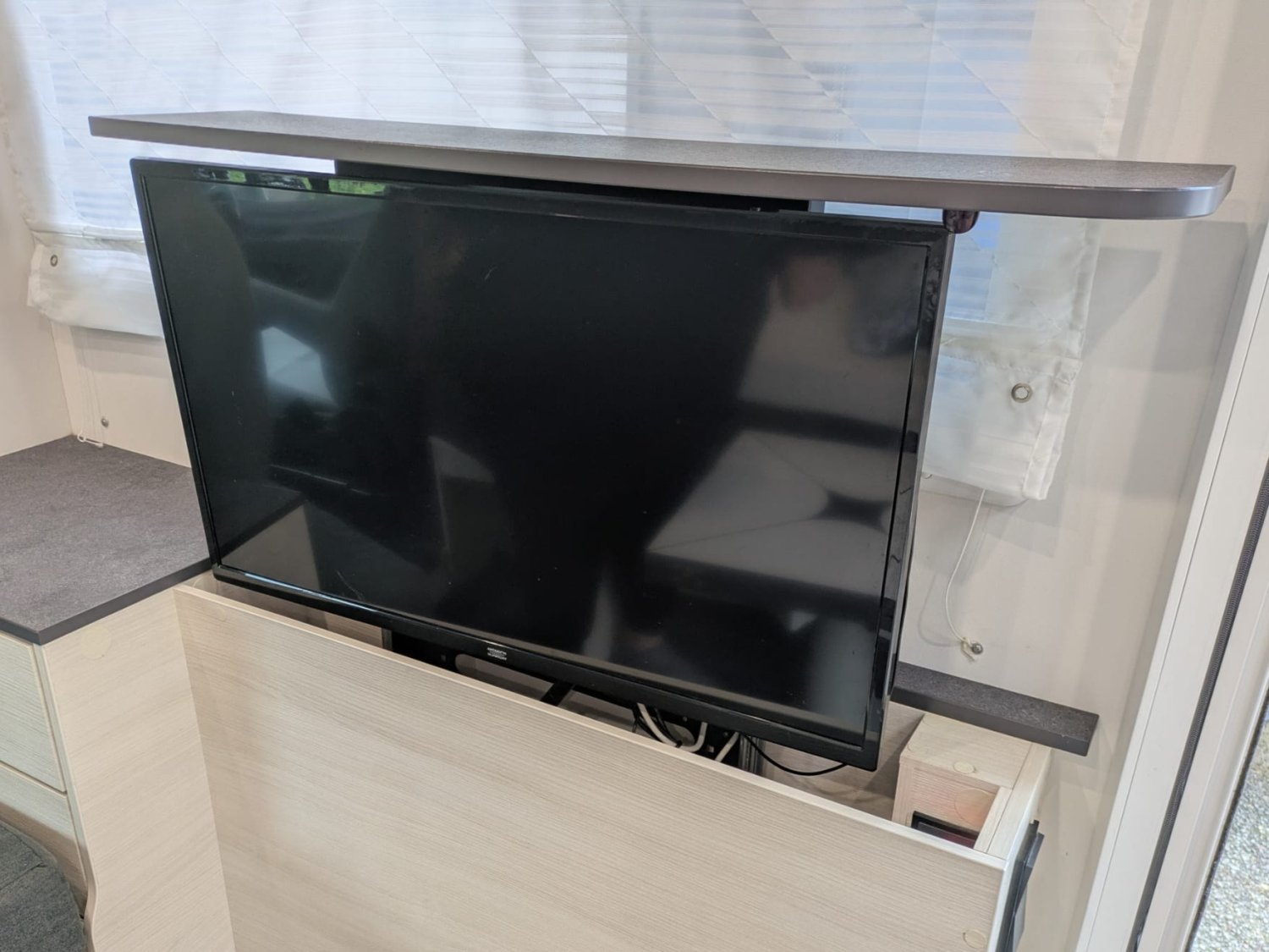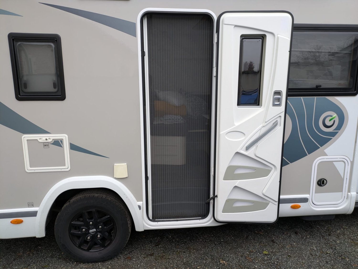 CHAUFFAGE CARBURANT, FRIGO 140L AVEC TIROIR 9BOUTEILLES, STORE EXTERIEUR 4.5M, CLIMATISATION CELLULE 220V, GAZINIERE 2 FEUX, FENETRE SDB, CUISINE EN L, ECLAIRAGE LED, MOUSTIQUAIRE DE PORTE CELLULE, PORTE VELO, RALLONGE DE TABLE, LANTERNEAU PANORAMIQUE, MARCHEPIED INTÉGRÉ, PORTE CELLULE XL (passage 645mm)