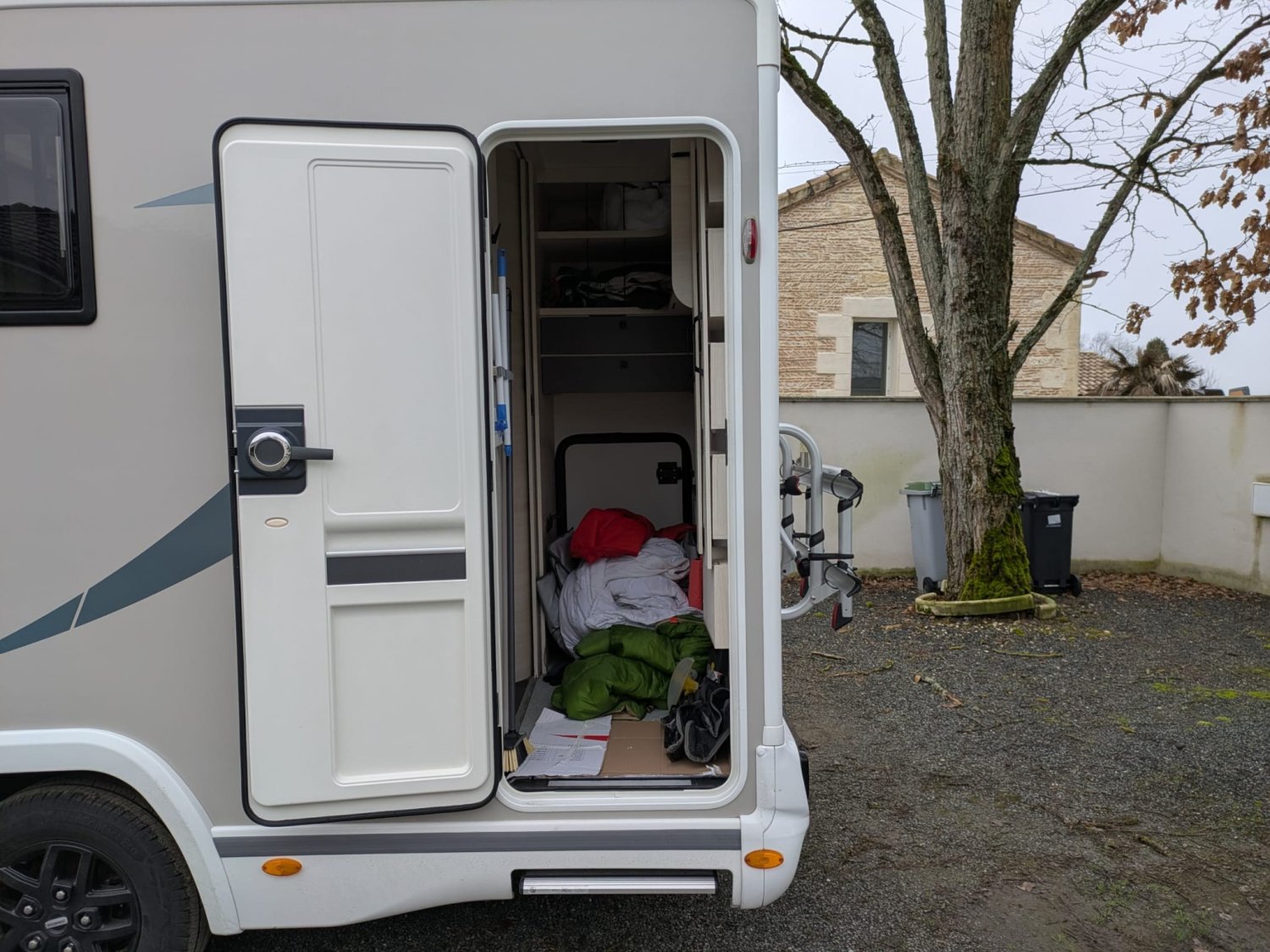À l’extérieur, le store 4,5 m, la soute traversante, le porte-vélo et la construction polyester imputrescible complètent un ensemble pensé pour durer et voyager loin.