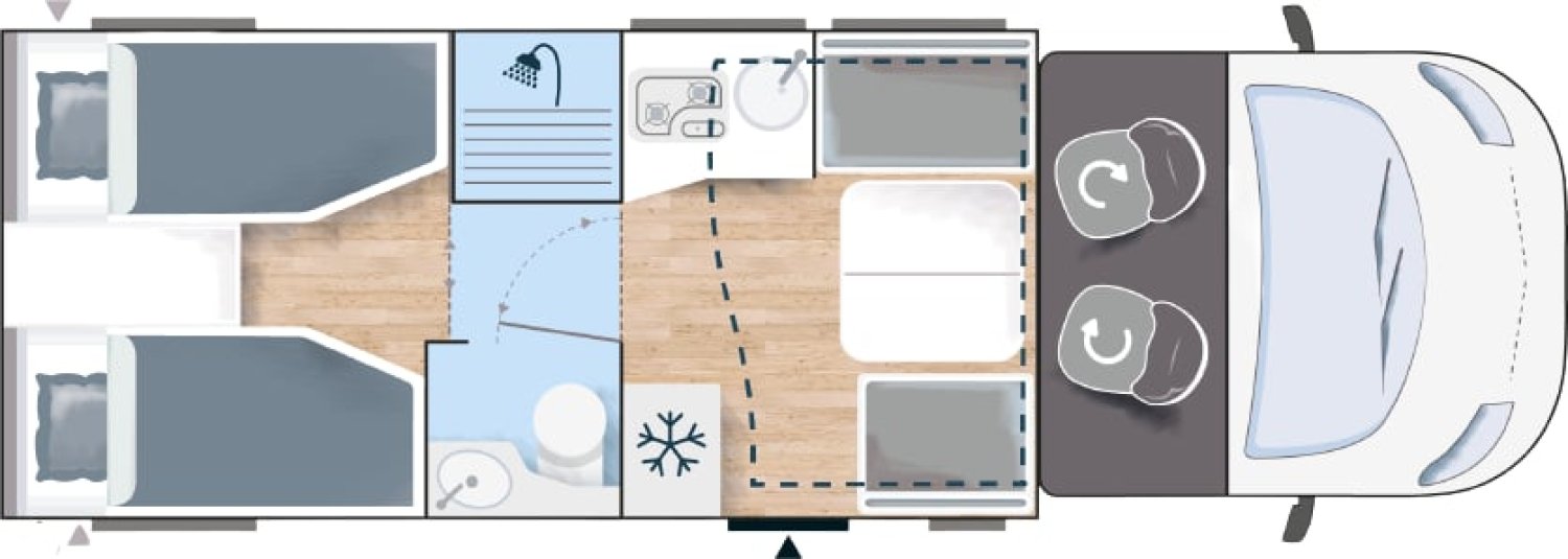 Store extérieur, panneau solaire éclairage extérieur, moustiquaire de porte, store cabine, compléments couchage lits jumeaux, caméra de recul, kit pose 2ème batterie, système multimédia, Apple car play, commandes au volant, antenne radio DAB, balisage LED au sol, caillebotis de douche, chauffage carburant utilisable en roulant à commande digitale programmable, climatisation manuelle cabine, conception IRP, plancher 64mm, double airbag, douchette extérieure, ESP, fenêtres double vitrage, feux antibrouillards, Fix and go, housses cabines assorties à la cellule, isolation marche d'entrée, lanterneau panoramique ouvrant, matelas prémium, pare-chocs avant couleur carrosserie, 2 penderies Fermeture centralisée porteur et cellule, prise de gaz extérieure, prises USB, panneau solaire pré-équipement TV, régulateur/limitateur de vitesse, rétroviseurs électriques dégivrants, start & stop, sièges cabine pivotants réglables en hauteur avec double accoudoir, voilages, dressings avec tiroir, éclairage marche d'entrée, feux et essuie-glaces automatiques, frein à main électrique, jantes en alliage 16 pouces noires, miroir entée rétro-éclairé, fixation isofix, porte cellule XL avec fenêtre, range chaussure, salle d'eau avec fenêtre, alerte anticollision, contrôle franchissement de lignes, détecteur de pluie et de luminosité, parebrise chauffant, convertisseur 2000W, ventilateur avec extracteur dans la chambre.