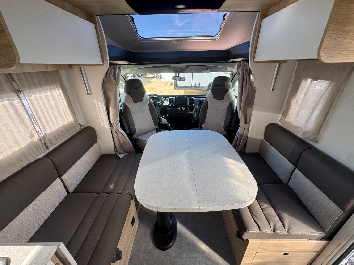 Le 797 mise sur l’espace et le confort avec son salon face-face accueillant et ses lits jumeaux de 90 cm transformables en king-size. À l’arrière, la salle de bain à double cloisonnement assure une séparation parfaite des zones jour et nuit. Ce profilé séduit les amateurs de circulation fluide, de modularité et d’élégance intérieure, pour voyager à deux sans renoncer à l’espace. A venir découvrir chez Libertium Toulon.