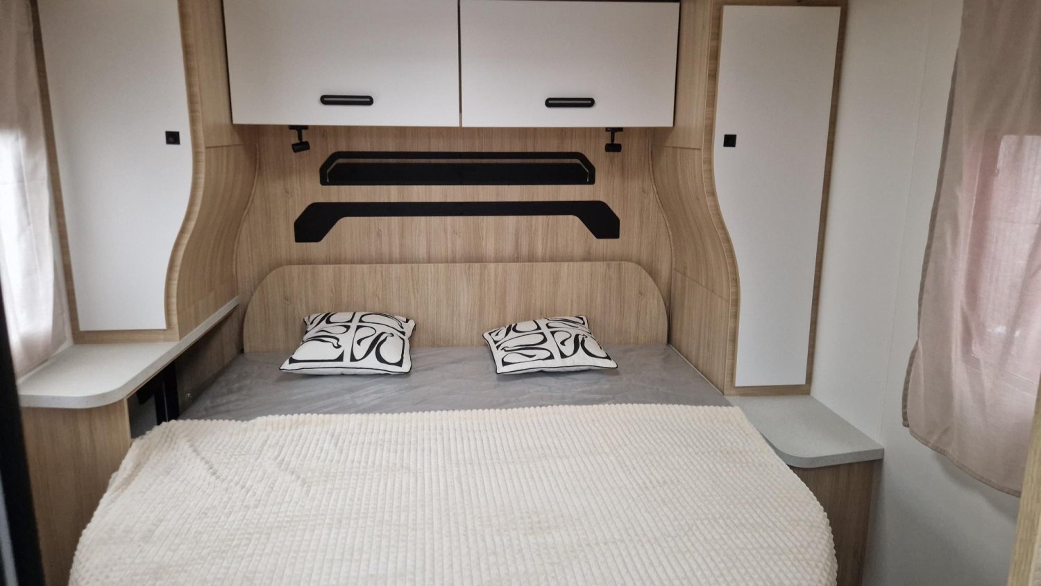 e Chausson 798 ultimate Line 2026 est un camping-car profilé haut de gamme conçu pour célébrer les 45 ans de la marque. Long d’environ 7,4 m, il offre un espace intérieur moderne et convivial avec un grand salon face-face « Smartlounge », une cuisine équipée, une salle d’eau avec douche séparée et un confortable lit central réglable en hauteur. Il dispose également d’un lit de pavillon électrique et d’un vaste garage arrière. Basé sur le châssis Fiat Ducato 2.2 L 140 ch , il combine confort de conduite, design élégant et nombreux équipements de série : jantes alliage, panneau solaire, caméra de recul, multimédia connecté et finitions soignées. Idéal pour voyager à deux ou en famille avec style et autonomie.