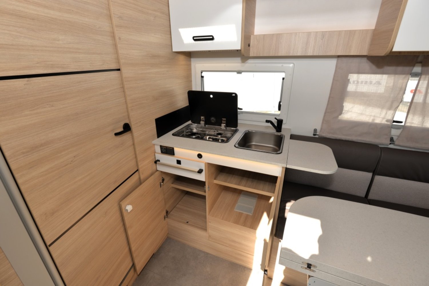 Le profilé 798 allie élégance et fonctionnalité pour des voyages tout confort. Son salon face-face crée un bel espace convivial, idéal pour partager les repas ou se détendre. À l’arrière, un lit central 160 cm garantit des nuits douces, tandis que la salle de bain à double cloisonnement permet une séparation parfaite des espaces. Un choix premium pour ceux qui veulent voyager sans compromis, à deux ou en duo d’amis.