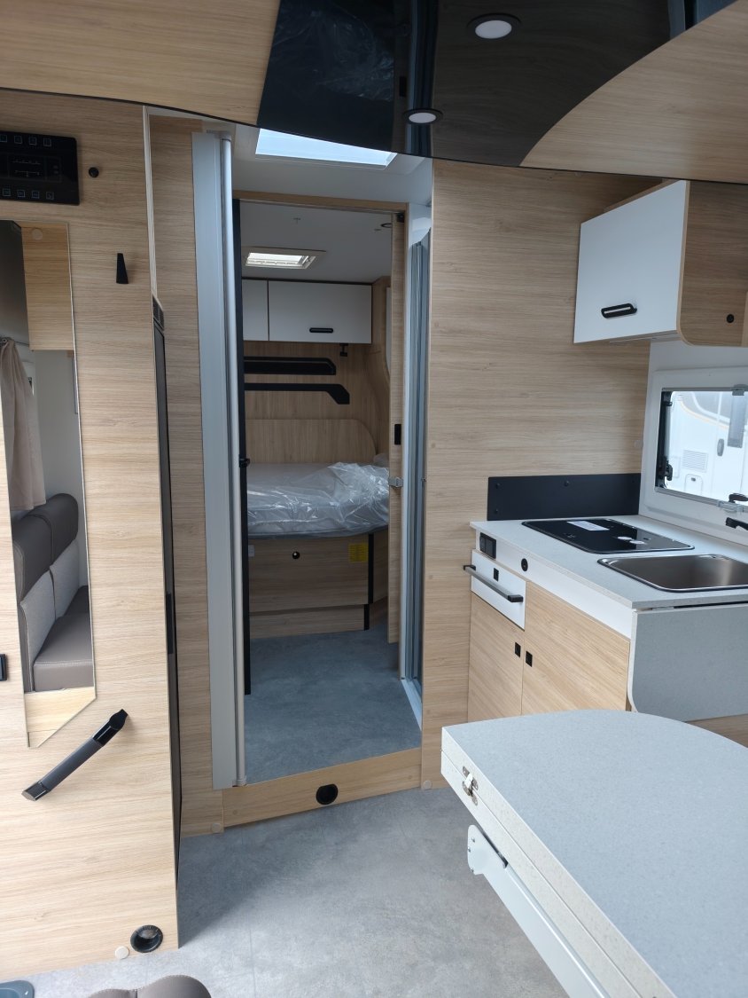 Le profilé 798 allie élégance et fonctionnalité pour des voyages tout confort. Son salon face-face crée un bel espace convivial, idéal pour partager les repas ou se détendre. À l’arrière, un lit central 160 cm garantit des nuits douces, tandis que la salle de bain à double cloisonnement permet une séparation parfaite des espaces. Un choix premium pour ceux qui veulent voyager sans compromis, à deux ou en duo d’amis.