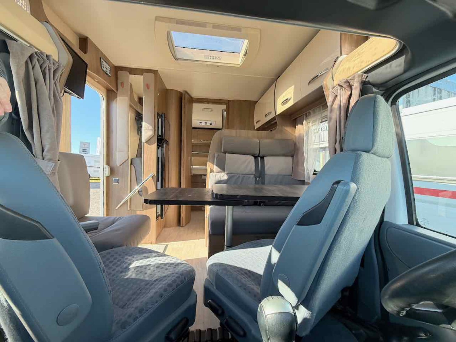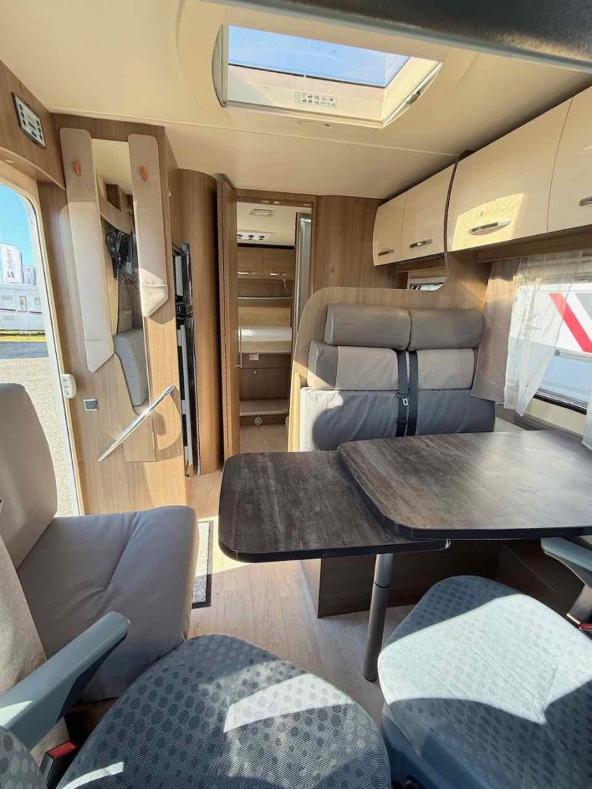 Le grand salon avec sièges pivotants accueille jusqu’à 5 convives, parfait pour partager des repas en famille ou entre amis. Très lumineux avec son Skyroof.