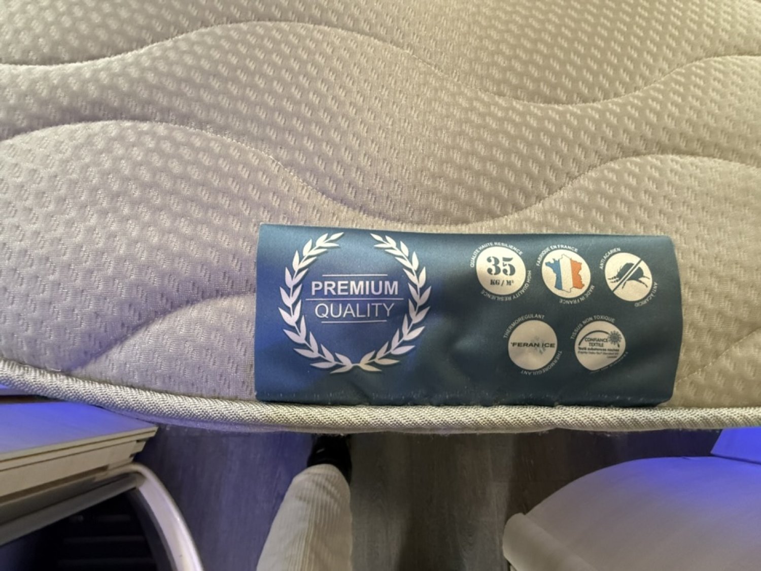 chambre avec un lit permanent de 200 x 160 cm, un lit par ailleurs réglable en hauteur afin d’ajuster l’espace de stockage de la soute-garage. Vous l’aurez compris, cet intégral dispose d’équipements d’agrément pour faciliter vos voyages, même les plus longs