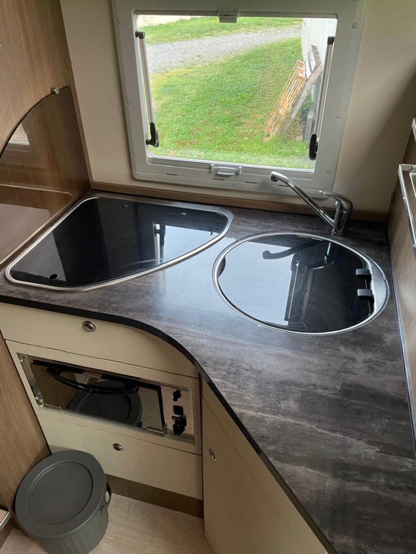 4 places CG - 4 places couchage ( 1 lit arrière permanent 140/190 et 1 lit pavillon 140/190) - 4/5 places repas