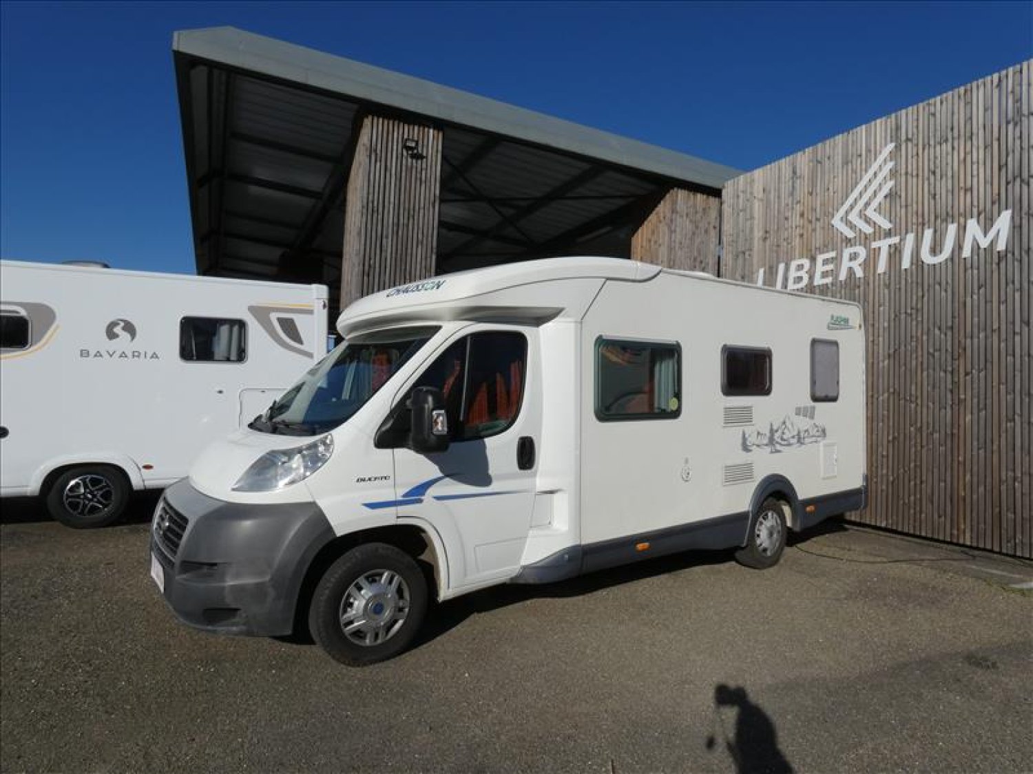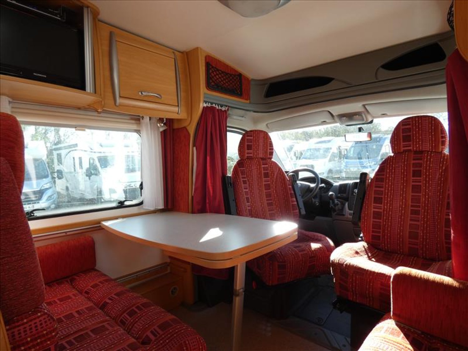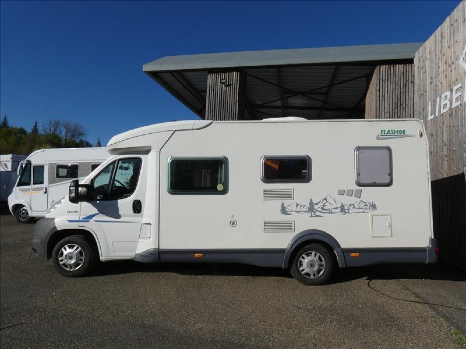 Profilé de 6.69 en lit à la française et lit dînette, le CHAUSSON Flash 08 vous permettra de partir en famille avec un encombrement extérieur réduit. Ce modèle d'occasion sur FIAT DUCATO 2.3 L 130 ch est équipé de la climatisation cellule !