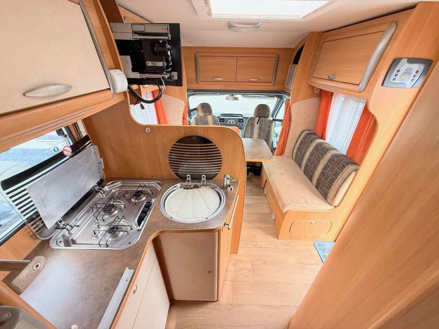 La dînette accueille 5 à 6 personnes, grâce aux fauteuils avant pivotants.