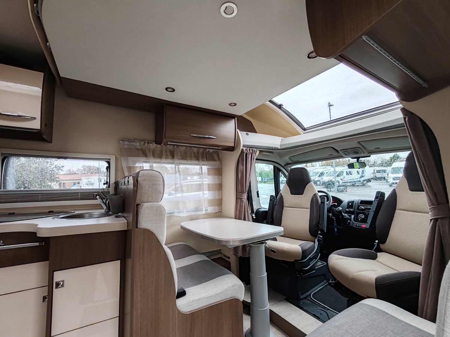 Réservoir diesel 75L, Lit dinette (217 x 184 cm), Lit permanent arrière (190 x 134 cm), Lit pavillon (200x140cm), Régulateur de vitesse, Housses de sièges, Chauffage Carburant, Autoradio, Lit de pavillon, Store Extérieur, Réfrigérateur absorbption Trimixte 175L, Porte vélo, Antenne sat automatique, TV, Double Batteries, Caméra de recul, Panneau solaire