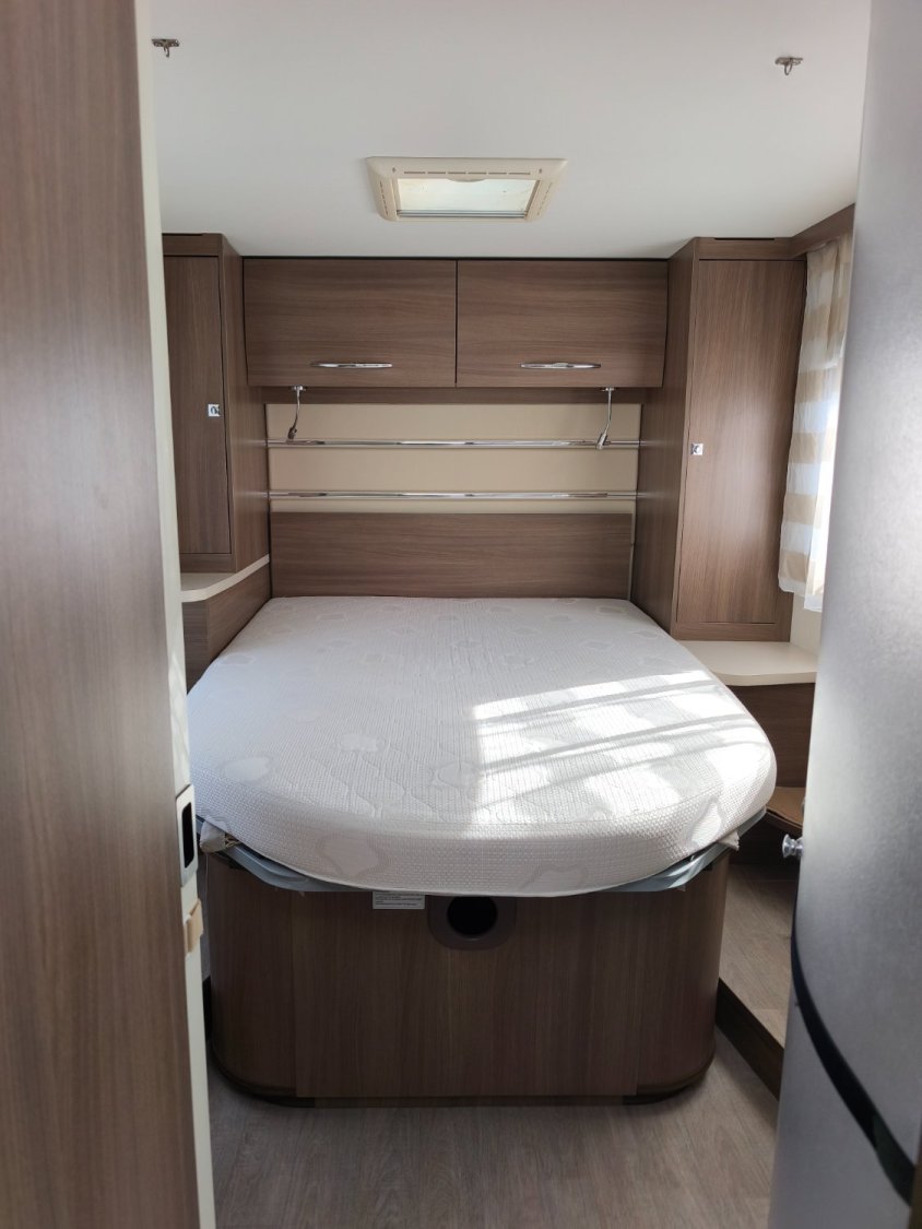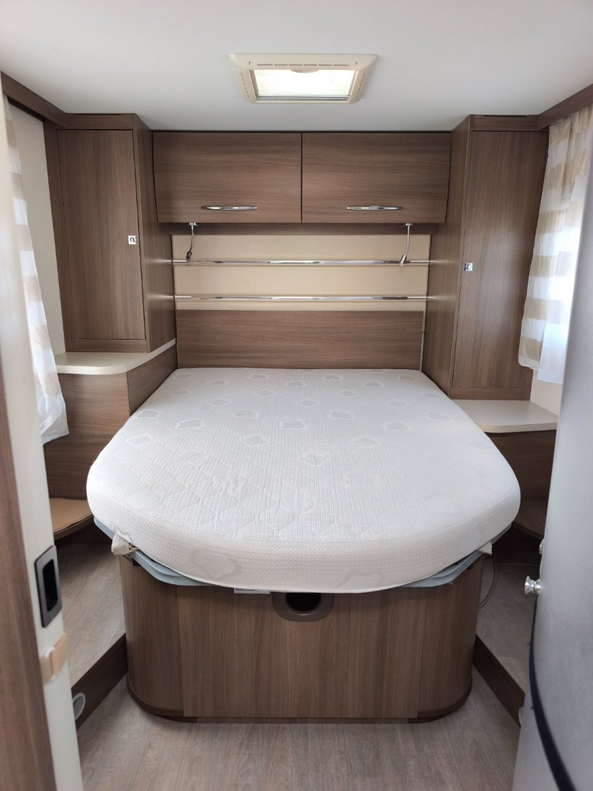 Panneau solaire, store banne, caméra de recul, antenne satellite manuel, télévision, attelage, chauffage thuma D4, moustiquaire sur fenêtre, éclairage extérieur, fixation porte-vélo, roue de secours