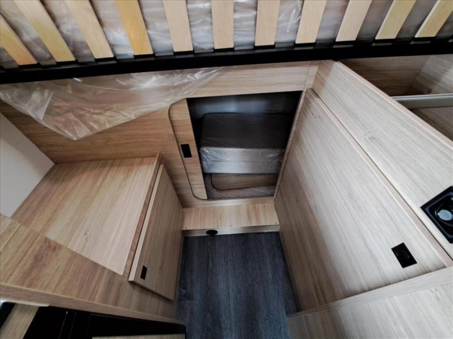 START & STOP, Sièges de cabine pivotants règlables hauteur double accoudoi, Techibox, Voilage dinette, Charnières placards amorties, Chauffage sur carburant utilisable en roulant, Conception IRP : Toit planche parois polyster, plancher 64mm, Double airbag, Fix and Go, Frein à main éléctrique, Housses de siege cabine assorties à l'ambiance cellule, Isolation marche d'entrée, Rétroviseurs éléctriques dégivrants, Ford pass, Fenêtres double-vitrage avec combiné stores moustiquaire, Blanc, Jantes acier avec enjoliveurs 16¨noires, Rideaux d'isolation thermique des baies de cabine, Feux antibrouillard, Feux et essuie-glaces automatiques, Eclairage de auvent, Lanterneau panoramique (ou double lanterneau), Prises USB/USB-C, Pré-disposition paneeau solaire (MPPT ready), Pré-équipement TV, ESP, Précâblage camera de recul, Régulateur/limiteur de vitesse, Climatisation automatique de cabine, Rideau de séparation cabine/cellule