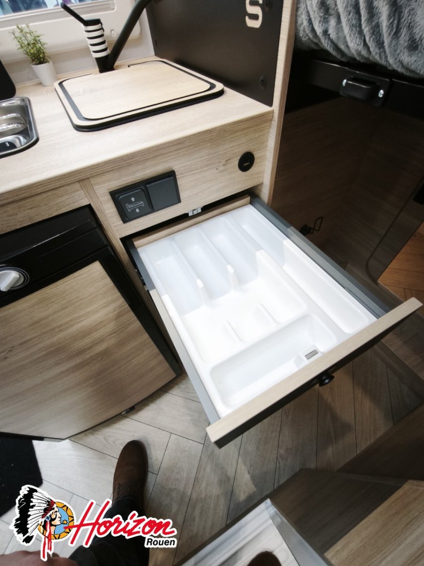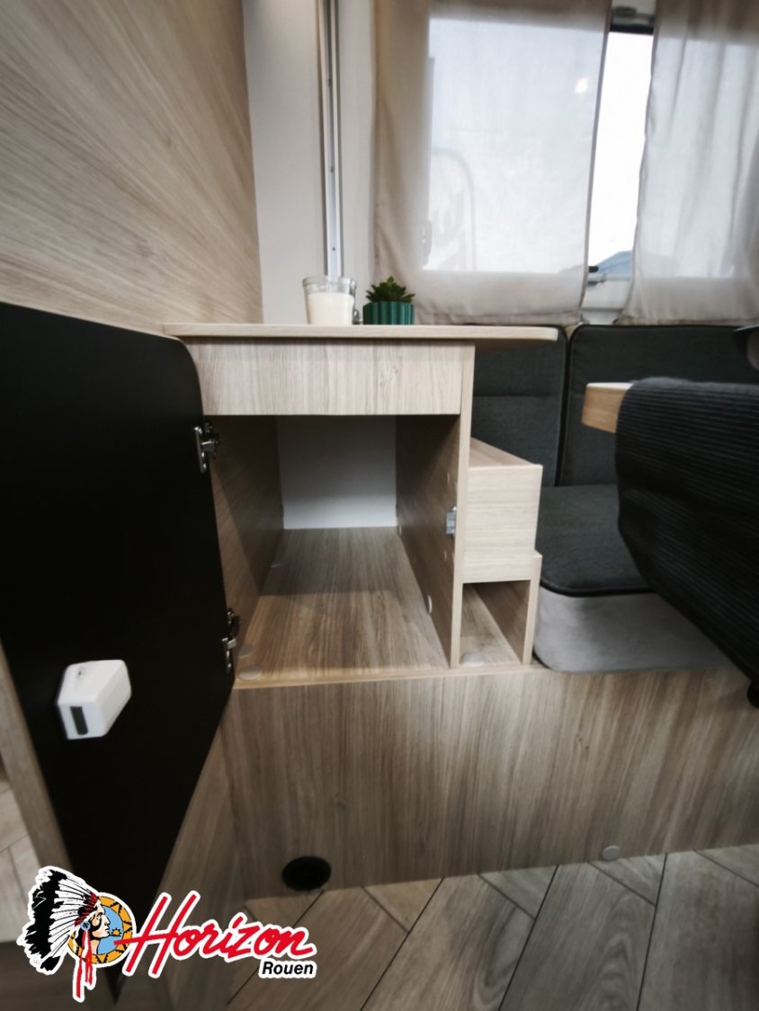 Ce véhicule compact de moins de 7 mètres offre deux espaces de vie distincts pour un confort optimal. Son agencement ingénieux allie la convivialité à la praticité dans un format réduit, sans compromis sur l’espace ni sur le design