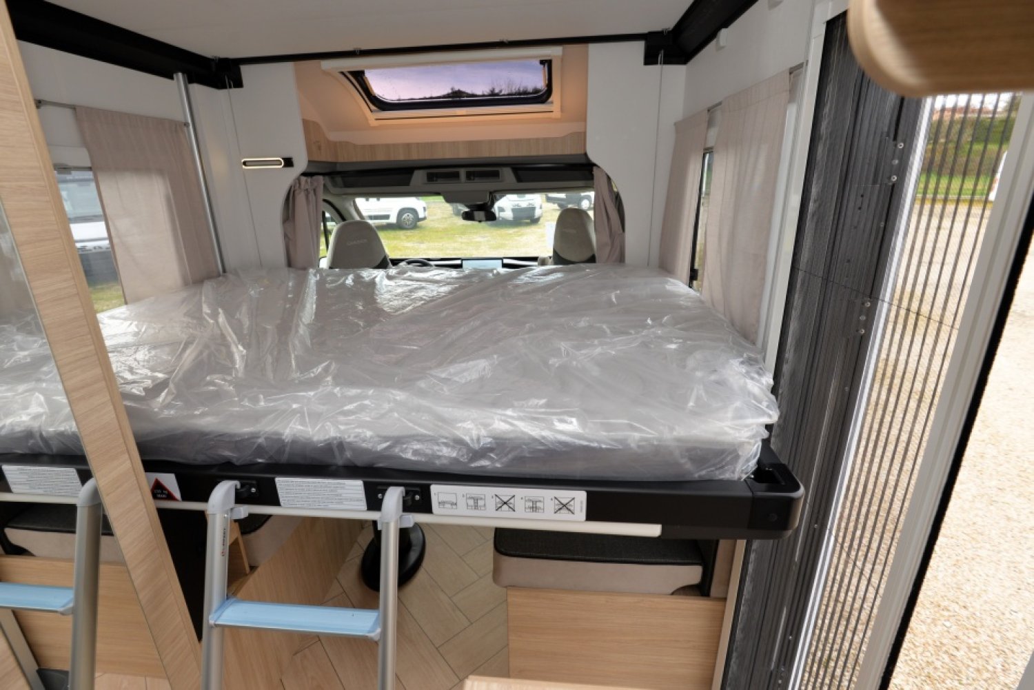 - Pack accessoires : Store extérieur - auvent, panneau solaire 140W, moustiquaire de porte, stores intérieur cabine, complément couchage dinette, kit pose 2ème batterie