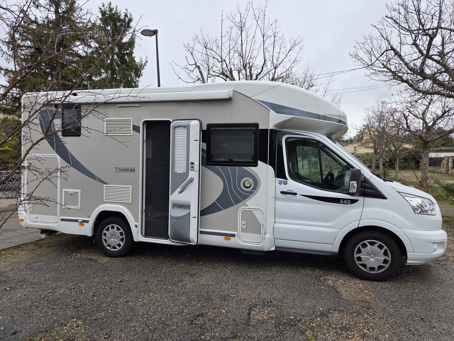 Le Chausson Titanium 640 millésime 2018 est un camping-car profilé compact d’environ 7 m très apprécié pour son bon équilibre entre confort, volume de vie et maniabilité, parfait pour les voyages en couple ou en petite famille. Il repose sur un porteur Ford Transit 2.0 L diesel de 170 ch associé à une boîte automatique, offrant une conduite fluide et agréable, même sur routes variées. L’aménagement intérieur est intelligent et fonctionnel, avec un grand salon face-à-face, un lit pavillon électrique spacieux, une salle d’eau avec douche indépendante et WC séparés, ainsi que de nombreux rangements bien pensés. La version Titanium se distingue aussi par une finition soignée et des équipements confort : caméra de recul, store extérieur, panneaux solaires, moustiquaires, chauffage carburant, et autres options destinées à faciliter la vie à bord. Ce modèle offre ainsi un excellent compromis entre confort de vie, isolation thermique et facilité de conduite, avec une capacité pour 4 personnes en route et en couchage dans un ensemble compact et bien équipé.