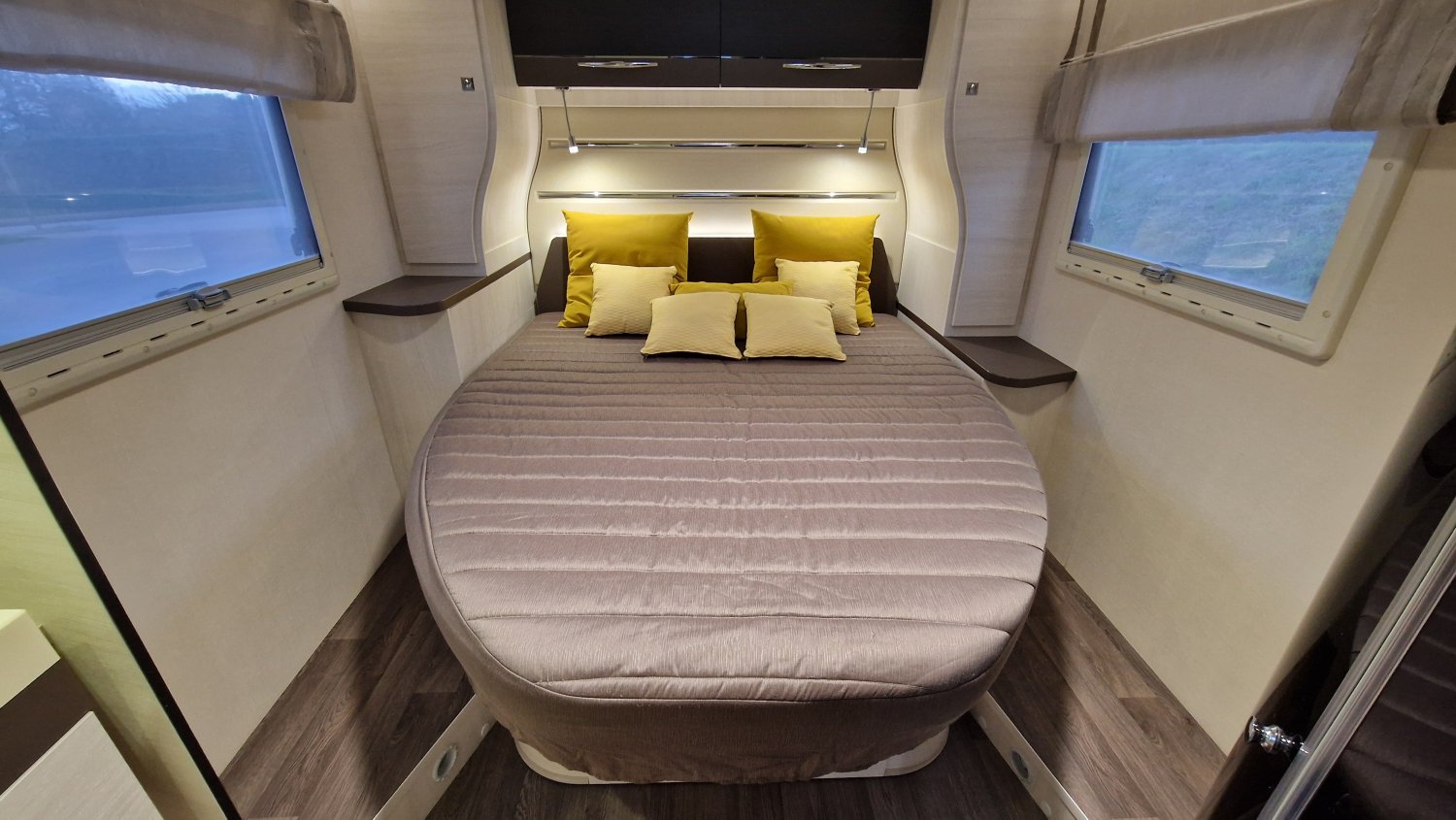 Créez votre propre horizon pour voyager sereinement toute l’année et profitez d’une implantation idéale pour un couple ou plus si nécessaire : couchages de qualité avec lit douillet central permanent à hauteur variable + lit de pavillon ergonomique, bloc cuisine en L fonctionnel tout équipé pour concocter de bons petits plats à déguster en toute convivialité dans un salon lumineux et confortable. Également, vous apprécierez l’intimité de l’espace Balnéo doté d’une cloison séparative avec douche et cabinet de toilettes totalement indépendants.