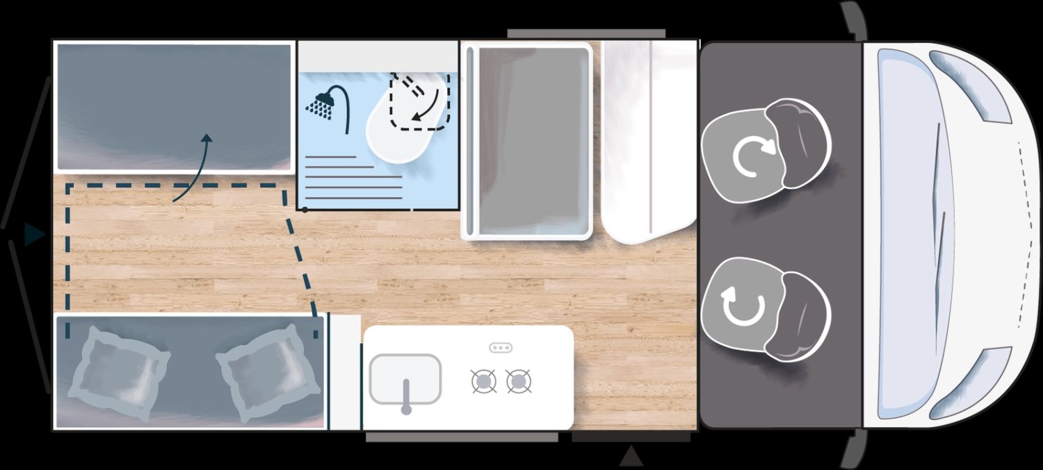 - Dimensions : L 5.41m x l 2.05m x h 2.65m
