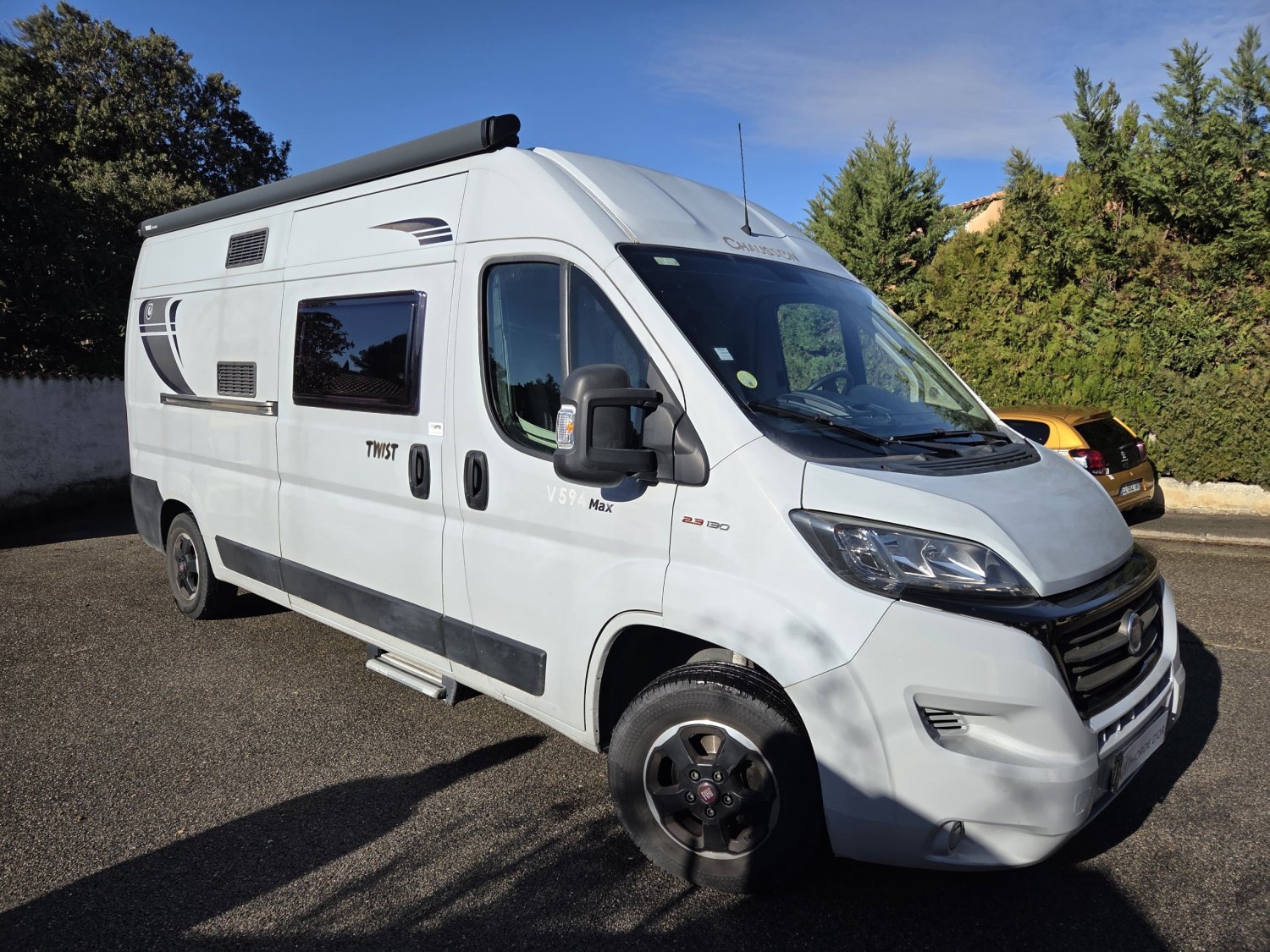 Le Chausson Twist V594 Max de 2019, en première main, est un fourgon aménagé compact et polyvalent, idéal pour les escapades comme pour les voyages au long cours. Il est équipé d’un Fiat Ducato 2,3 L de 130 ch, reconnu pour sa fiabilité et son agrément de conduite. Son aménagement intelligent comprend un chauffage carburant, assurant un confort optimal en toute saison, ainsi que des lits superposés doubles, offrant un couchage confortable pour quatre personnes. Pratique, lumineux et facile à manœuvrer, ce modèle propose un excellent équilibre entre confort, autonomie et plaisir de voyager.
