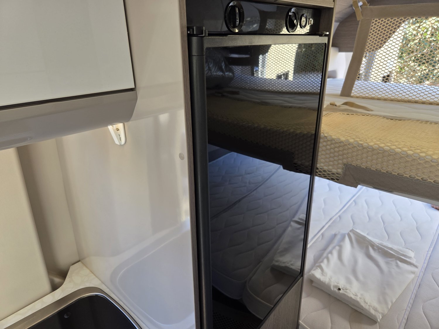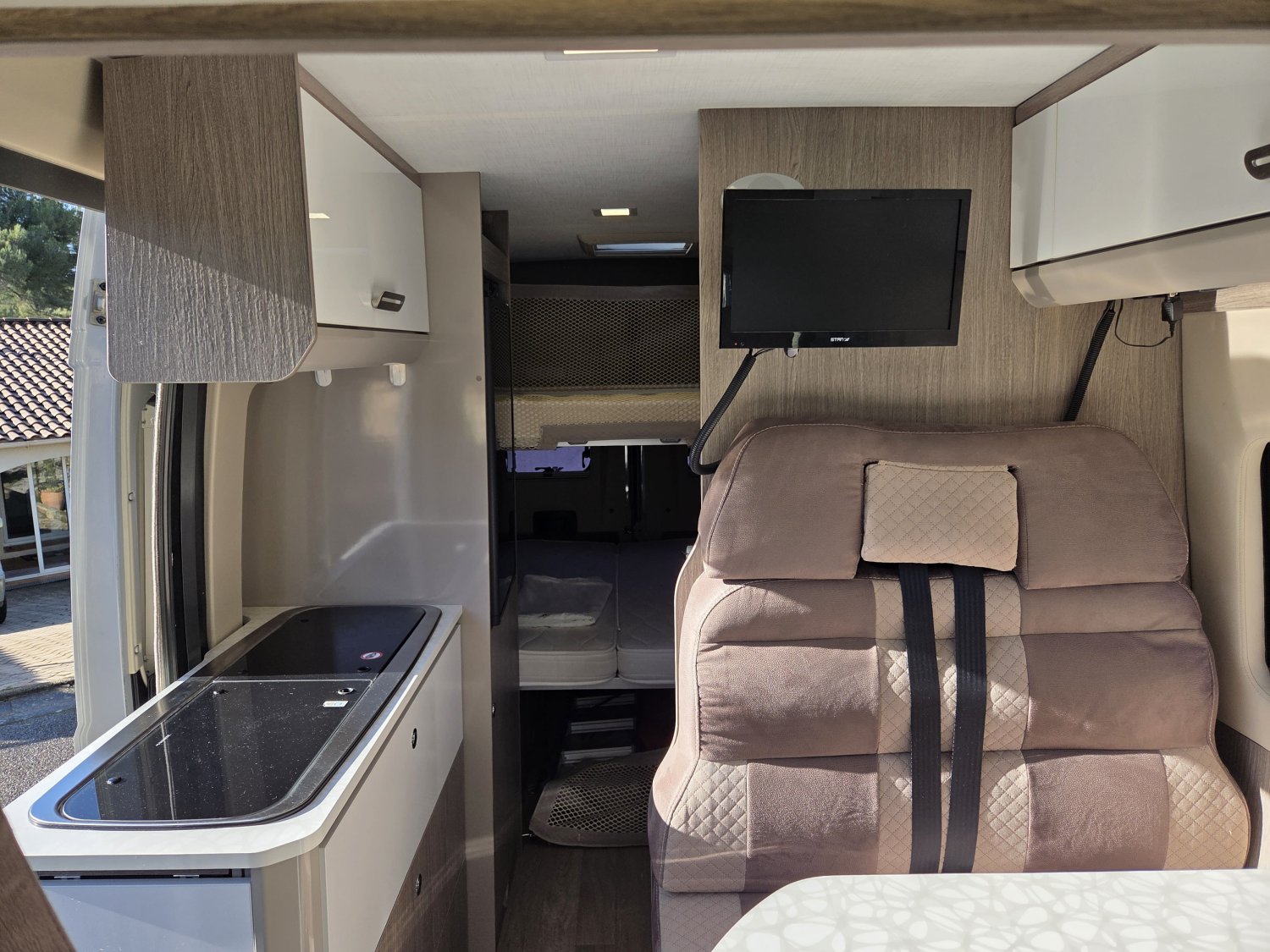CHAUFFAGE CARBURANT, STORE EXTERIEUR 3.5M, GAZINIERE 2 FEUX, FENETRE SDB, ECLAIRAGE LED, MOQUETTE CABINE, MOUSTIQUAIRE DE PORTE CELLULE, PORTE VELO, RALLONGE DE TABLE, REFRIGERATEUR TRI MIX