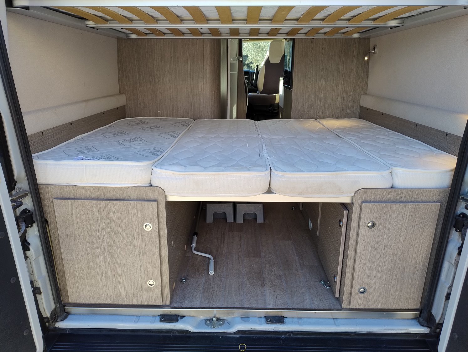 C’est le fourgon idéal pour partir en famille grâce à ses 4 couchages permanent dans un gabarit réduit de moins de 6m ! Vous partez à 2 seulement ? Retirez facilement la couchette supérieure pour plus d’espace ! Pour l’hiver son isolation performante et son chauffage économique sur carburant vous garantissent de belles et confortables nuits.