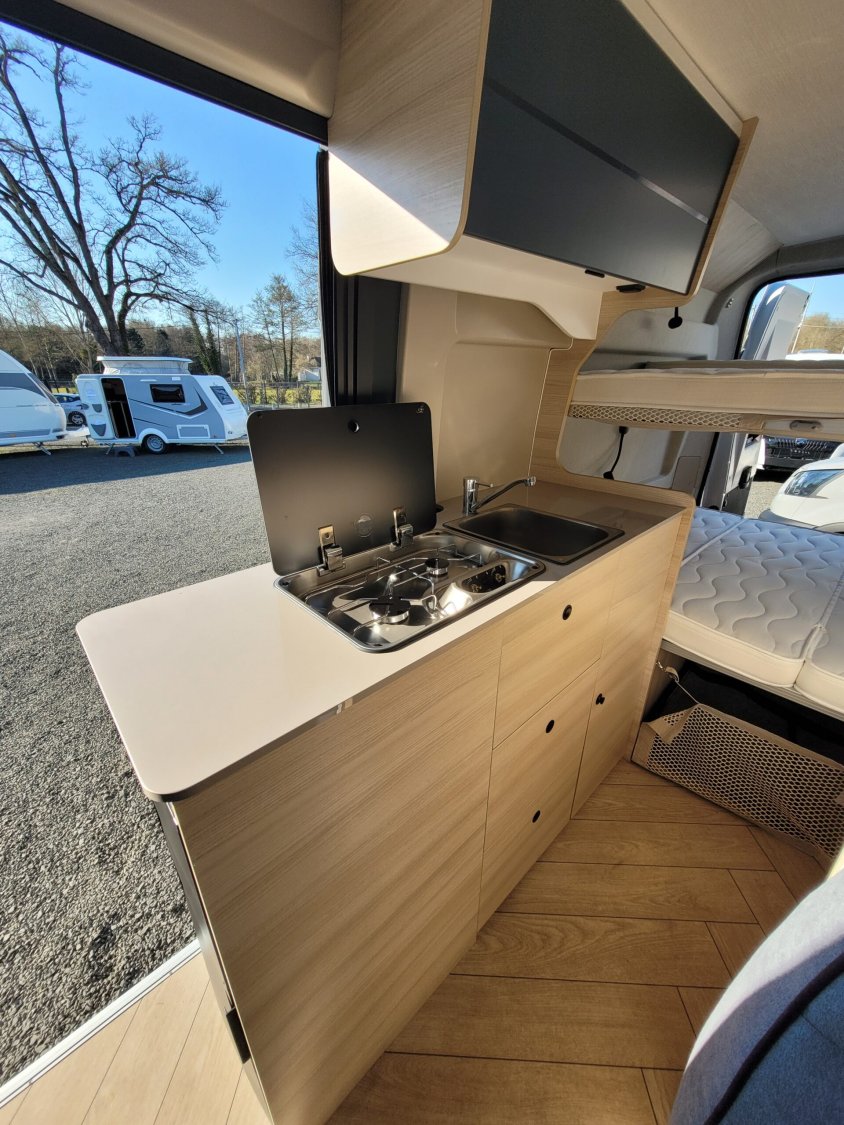 Équipements : Bloc radio / camera, Bloc multimédia radio/camera/Carplay, Camera de recul, Cassettes Moustiquaires, Clim moteur, Fermeture centralisée, Frigo à compression, Kit anti-crevaison, Limiteur de vitesse, Marchepied électrique, Moustiquaire de porte, Stores de cabine, Volets isothermes