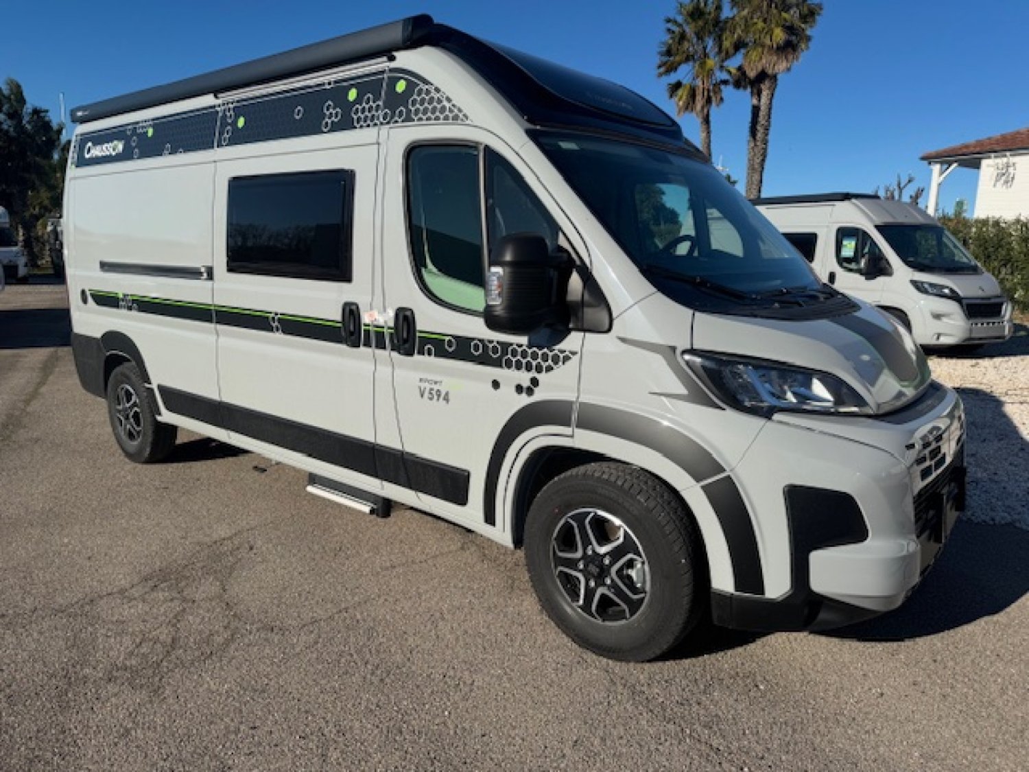 PERPIGNAN CAMPING CARS vous propose de venir visiter son fourgon/van : le Chausson V 594 Sport Line sur Fiat 2.2L 140CV en boîte de vitesse automatique 8 rapports (modèle 2026) et il vous propose un équipement sans faille pour un prix défiant toute concurrence !!