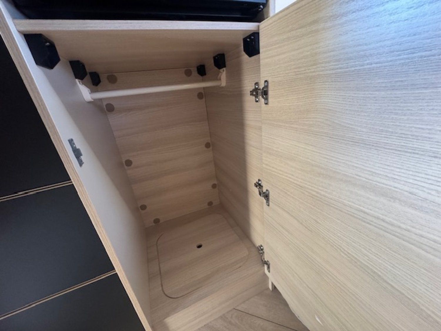 Il présente 3 vraies places couchage avec son lit arrière transversal 2 personnes (186x149) ainsi qu'un lit dinette (160x95), une salle de bain douche WC, un chauffage diesel Truma 4000 performant et une cuisine toute équipée !! Tout cela en 5,99 mètres de long.