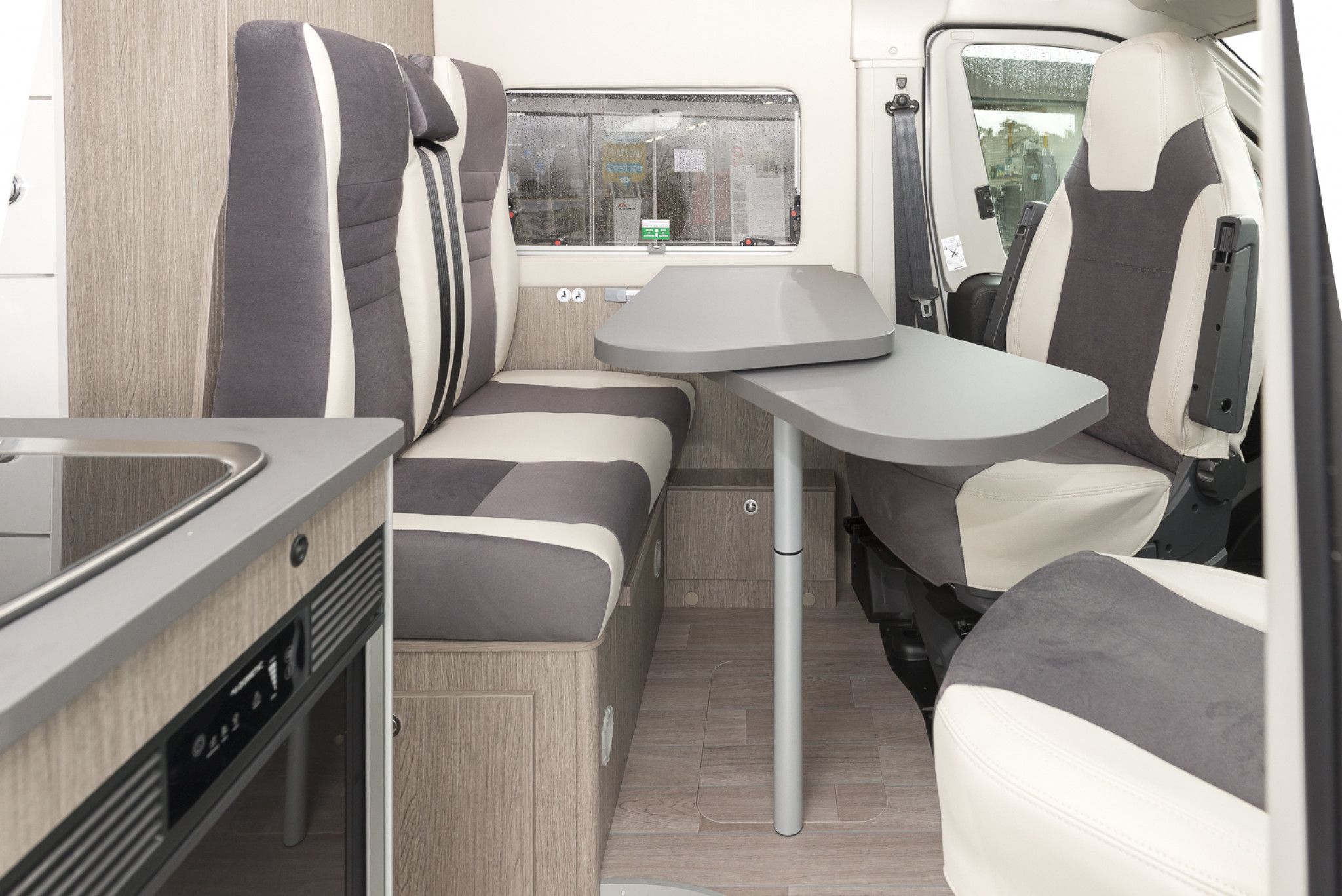 ABS, Airbag conducteur, Airbag passager, Anti démarrage, ASR, Autoradio, Baies sur portes arrières, Batterie auxiliaire, Boite 6 vitesses, Caméra de recul, Chauffage TRUMA Combi 4 CP Plus, Chauffe eau , Climatisation porteur, Double Airbag, Eclairage LED, Embases de siège pivotantes, Fermeture centralisée, Isolation cabine interieure, Jantes aluminium, Kit solaire + régulateur, Lit d''appoint, Marche pied électrique, Moustiquaire de porte cellule, Peinture métallisée, Porte cellule vitrée, Rétroviseurs électriques, Sièges cabine réglables en hauteur, Station multimédia, Store, Store plissé cabine, Tapis de cabine, Verrouillage centralisé, Verrouillage centralisé porte cabine, Verrouillage centralisé porte cellule, Vitre electrique