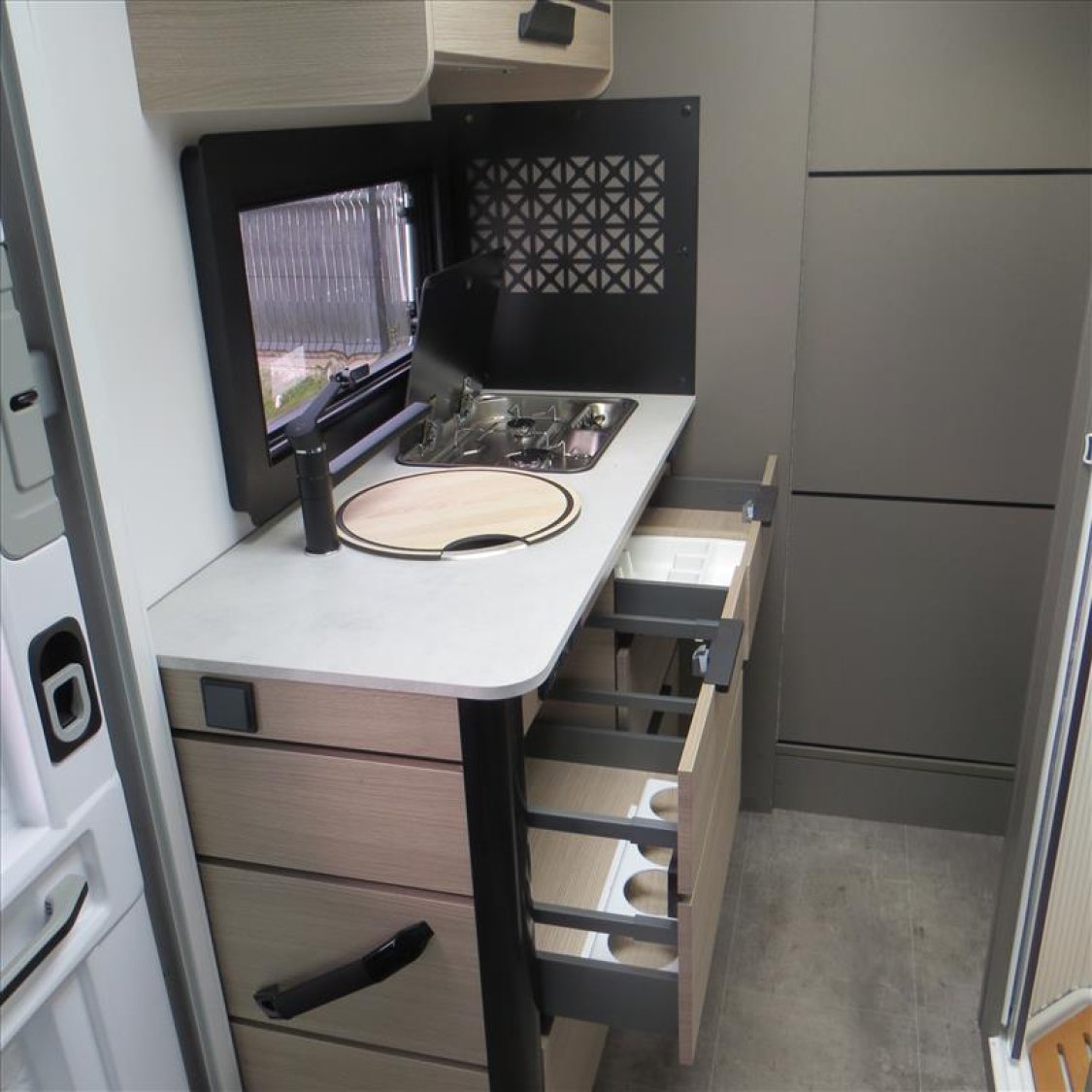 Caillebotis de douche, Chauffage sur carburant utilisable en roulant, Climatisation manuelle cabine, Feux antibrouillards, Fixation ISOFIX, Jantes alliage 16" noires, Motorisation 140cv 2.2l, Pare-chocs avant peint, Porte cellule avec fenêtre, Porte cellule avec fermeture centralisée, Régulateur et limiteur de vitesse, Rétroviseurs électriques et dégivrants, Sièges cabine pivotants réglables en hauteur, Start & stop, Traction +, Volant et levier de vitesse gainés cuir
