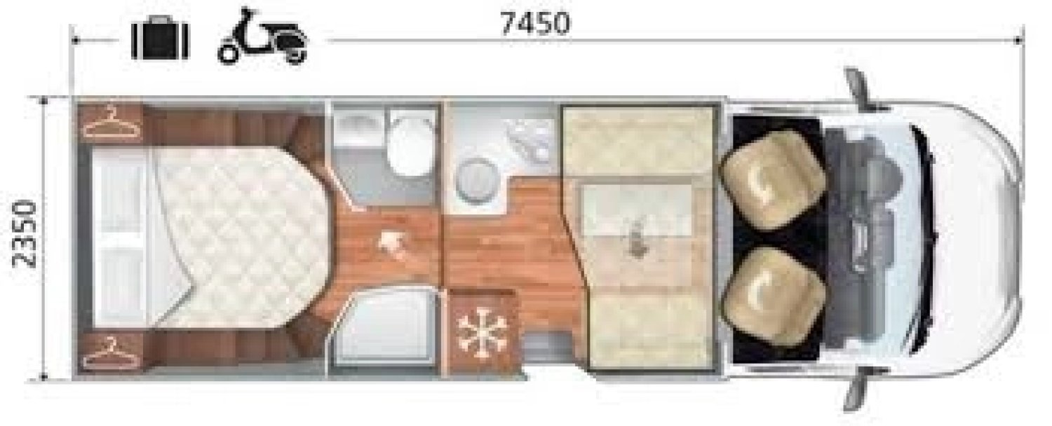 - Dimensions : L 7.45m x l 2.35m x h 2.95m