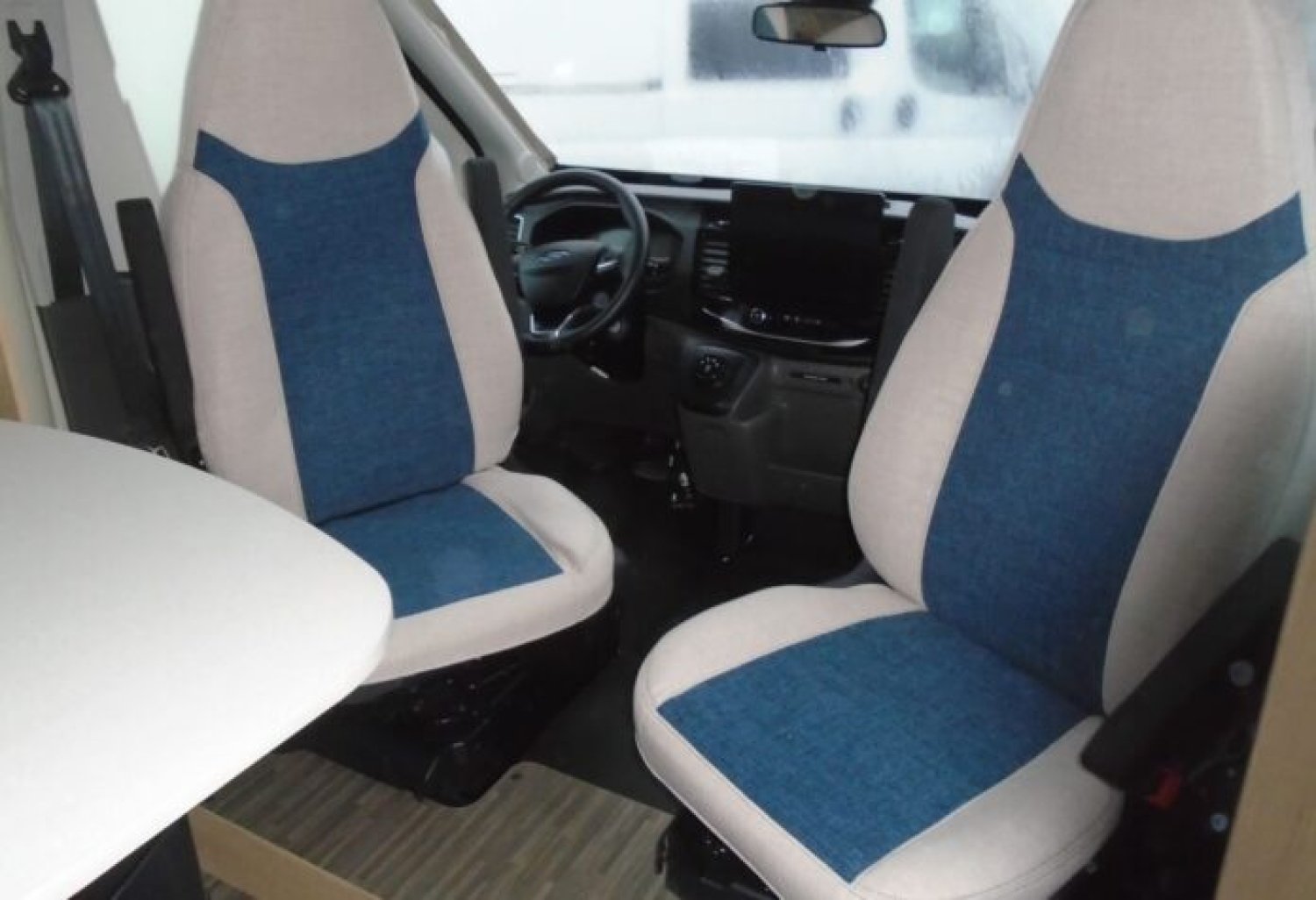 Châssis Ford transit, régulateur de vitesse avec « intelligent speed assist », allumage des phares et essuie-glace automatique, frein à main élecrique, caméra de recul, système de freinage avec atténuation de collision N2, alerte et assistance de maintien de voie, reconnaissance des panneaux de signalisation, capteurs de stationnement avant, capteur de pression des pneus, écran tactile 12 pouces avec système SYNC4, tableau de bord semi-numérique, climatisation automatique