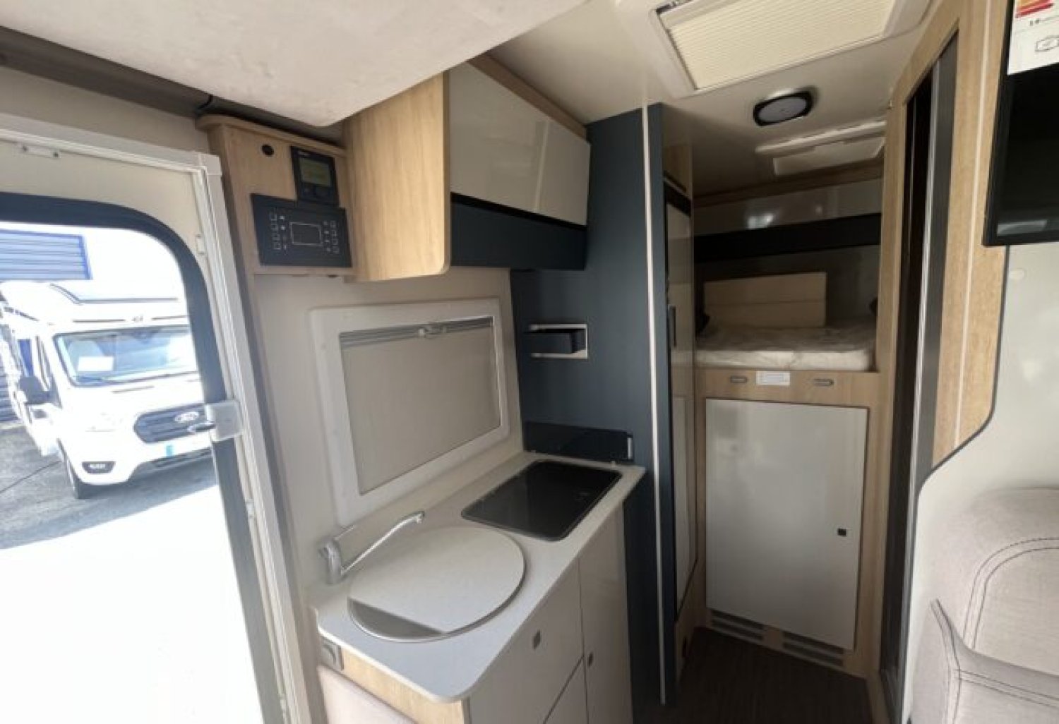 Véhicule - de métres en version étroite avec lit transversal et lit pavillon 1 place