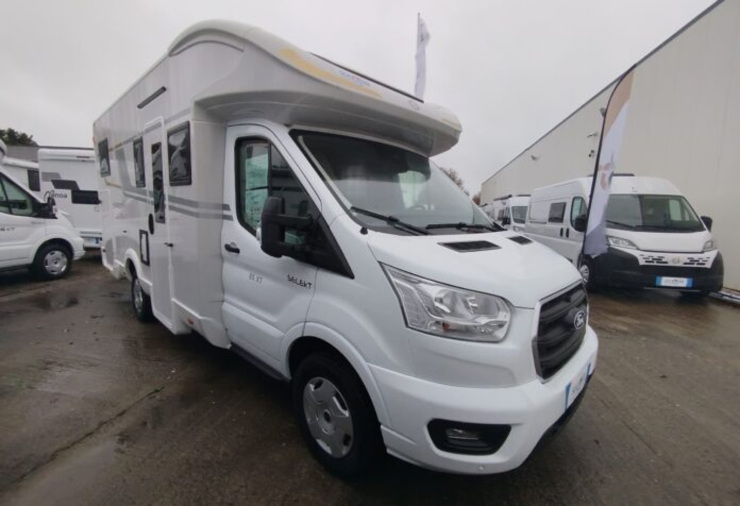 Le CI HORON 85 XT est un profilé de 6,99 m de long sur porteur Ford Transit 2,0 L 165 ch avec boîte automatique. Il offre 5 places carte grise et 5 couchages grâce aux lits jumeaux à l'arrière, le lit de pavillon ainsi que le couchage dinette convertible.