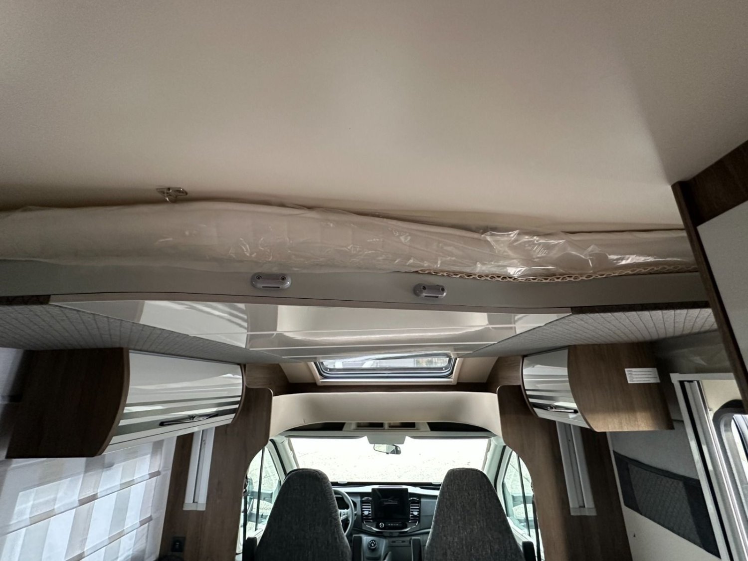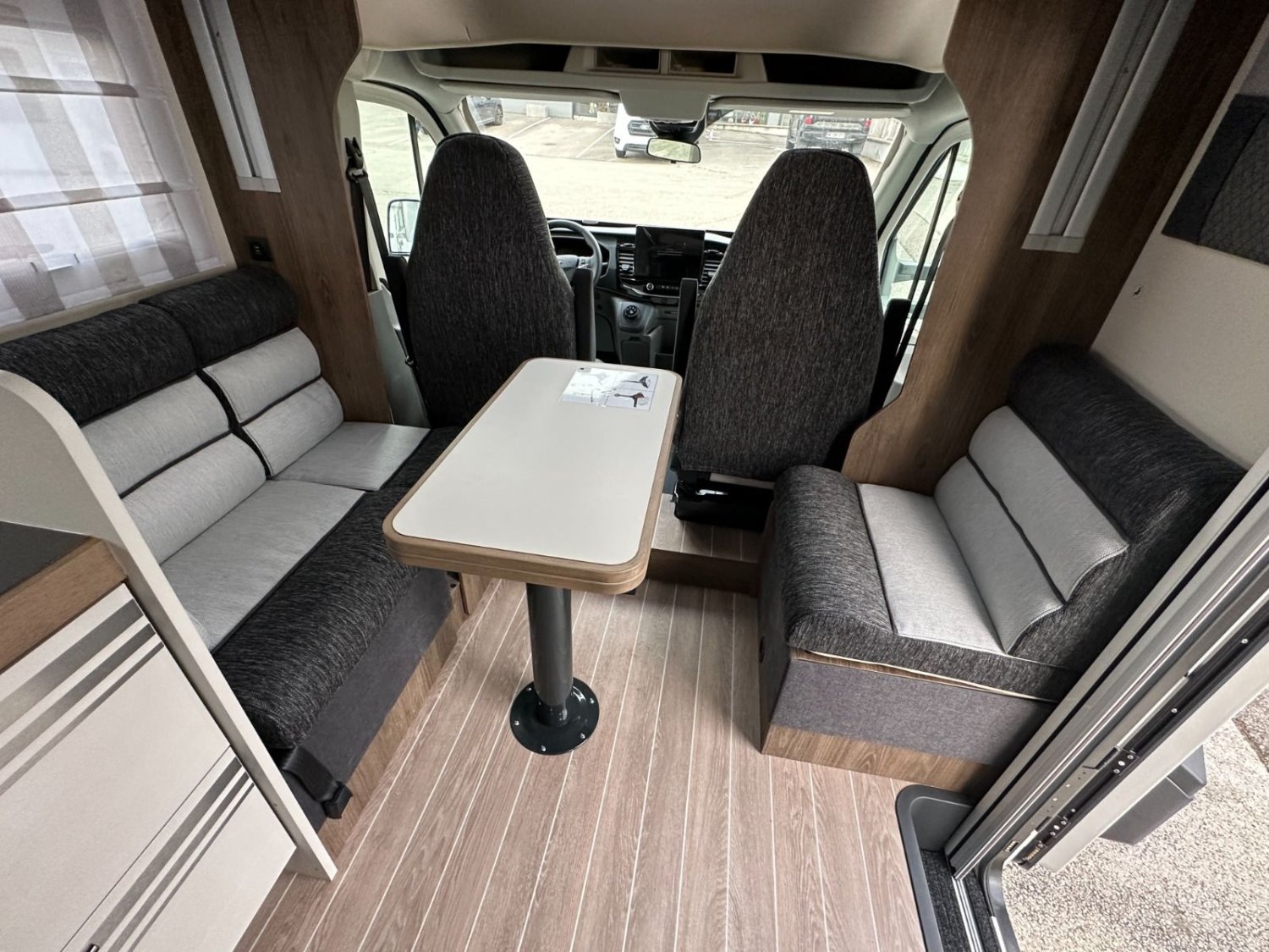 Pack Magis Ford (motorisation 165 Cv, feux diurnes, boite à gants avec serrure, Habillage intérieur et tableau de bord finition "Trend", Pare chocs et bas de caisse latérales peints couleur carrosserie, porte XL avec 2 points de fermeture, fenêtre et fermeture centralisée, panneau solaire 200 w avec régulateur MPPT, stores occultants plissés cabine, store extérieur Antracite, prise de gaz externe + douchette extérieure)