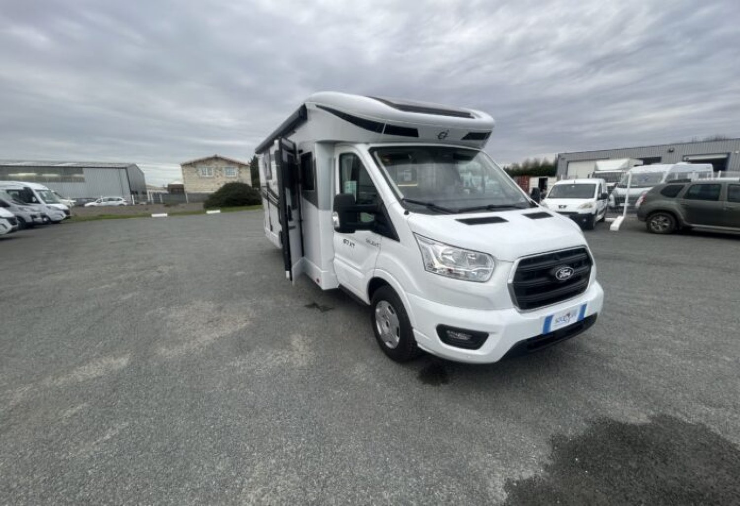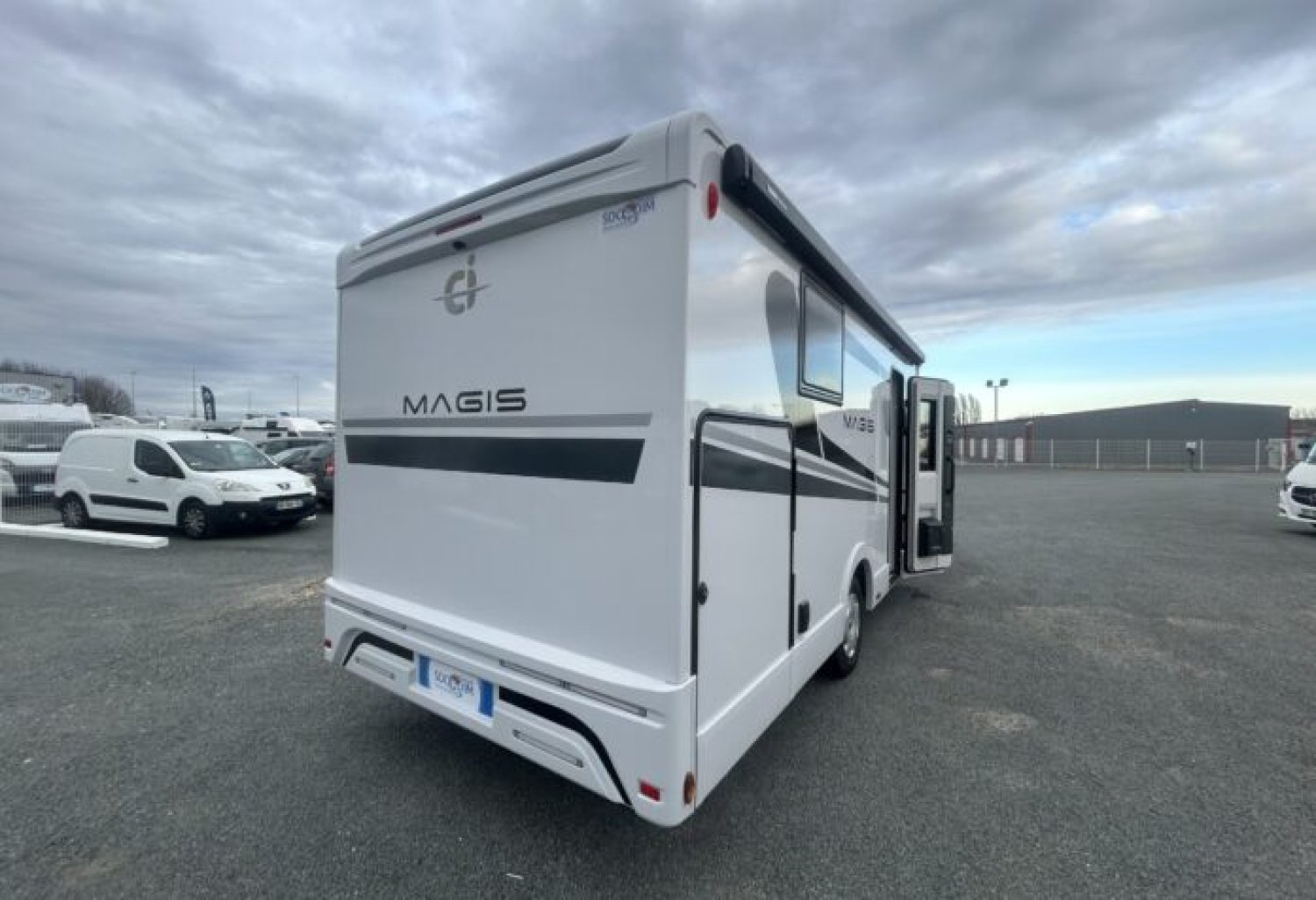 Le CI MAGIS 67 XT 2026 est un camping-car profilé neuf de 7,45 m sur porteur Ford Transit 2.0 L 165 ch avec boîte automatique, offrant 4 places carte grise et 4 couchages (lit central + lit de pavillon). Équipé de caméra de recul, clim auto, régulateur & beaucoup de rangements, il combine confort, ergonomie et modularité pour des voyages réussis.