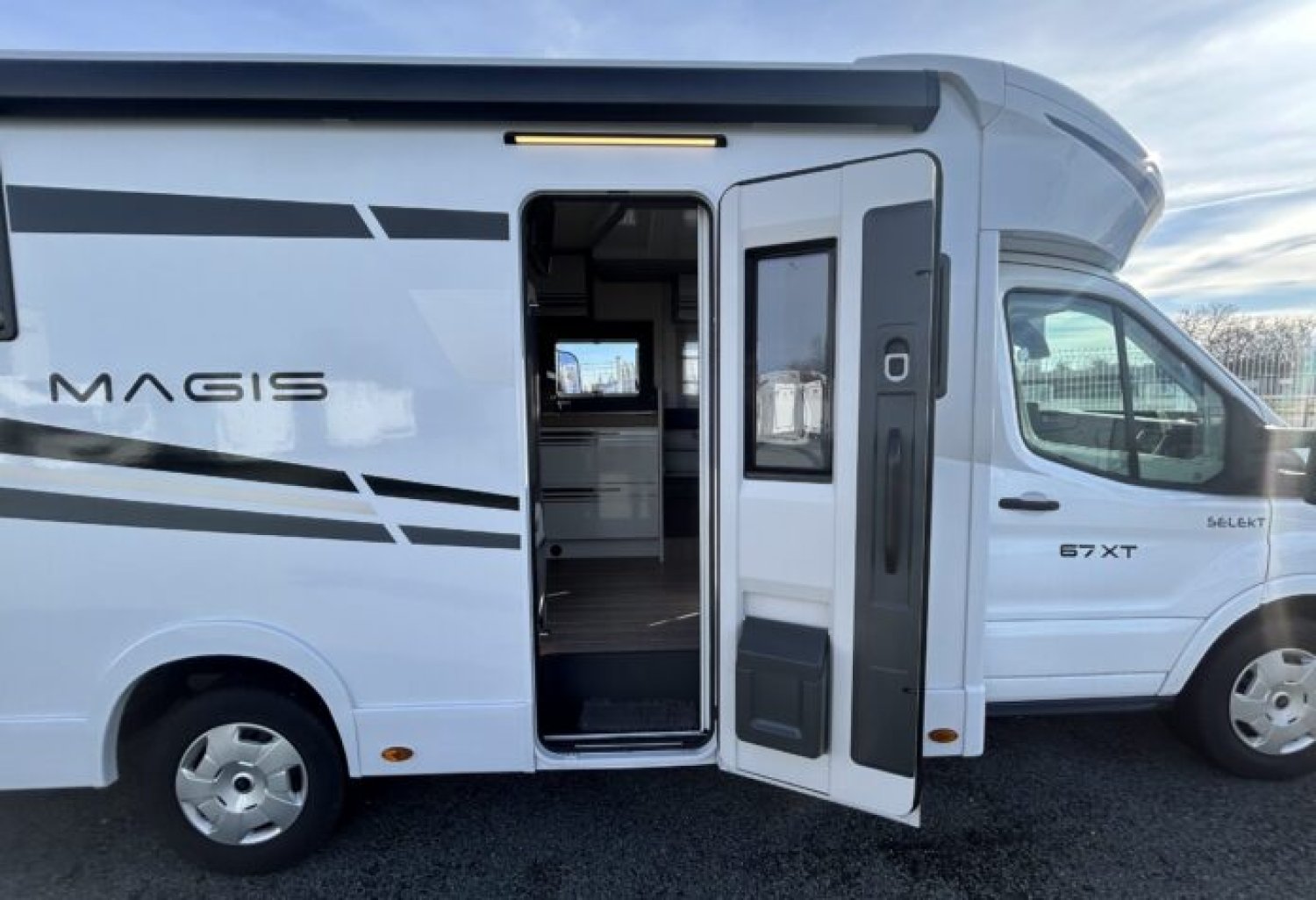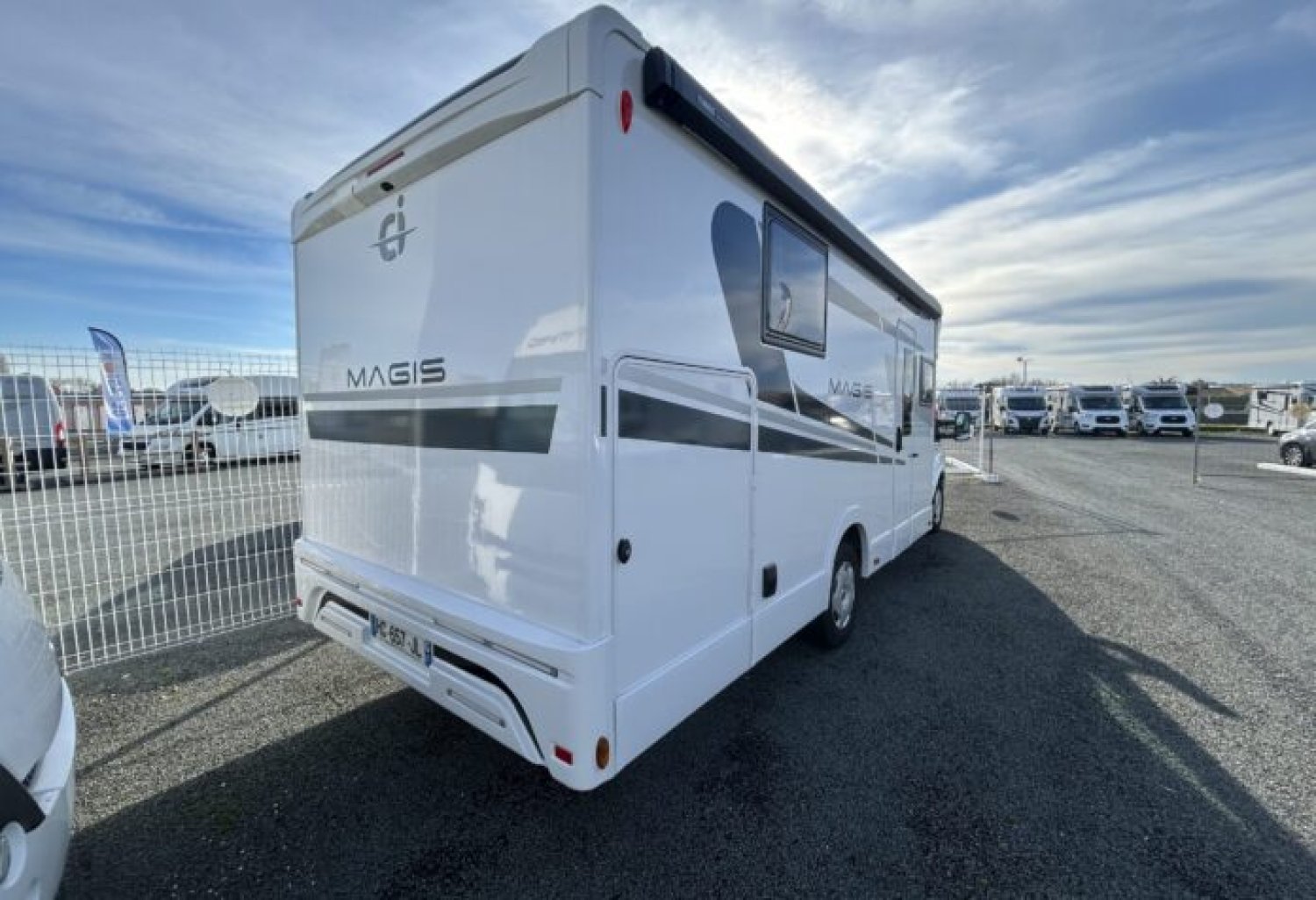 Le CI Magis 67 XT 2025 est un camping-car profilé d’occasion 4 places et 4 couchages, d’environ 7,45 m de long, idéal pour les escapades. Il offre un lit central, une salle d’eau indépendante, une cuisine équipée et une bonne isolation pour toutes saisons. Robuste et pratique, il allie confort et modularité pour voyager sereinement.