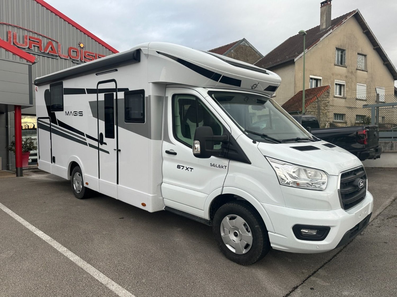 Pack Magis Ford (motorisation 165 cv, Feux diurnes, boite à gants avec serrure, habillage intérieur et tableau de bord finition "Trend", pare chocs et bas de caissse latérales peints couleur carrosserie, porte XL avec 2 points de fermeture fenêtre et fermeture centralisée, panneau solaire 200 w avec régulateur MPPT, stores occultants plissés cabine, store extérieur Anthracite, prise de gaz externe + douchette extérieure)